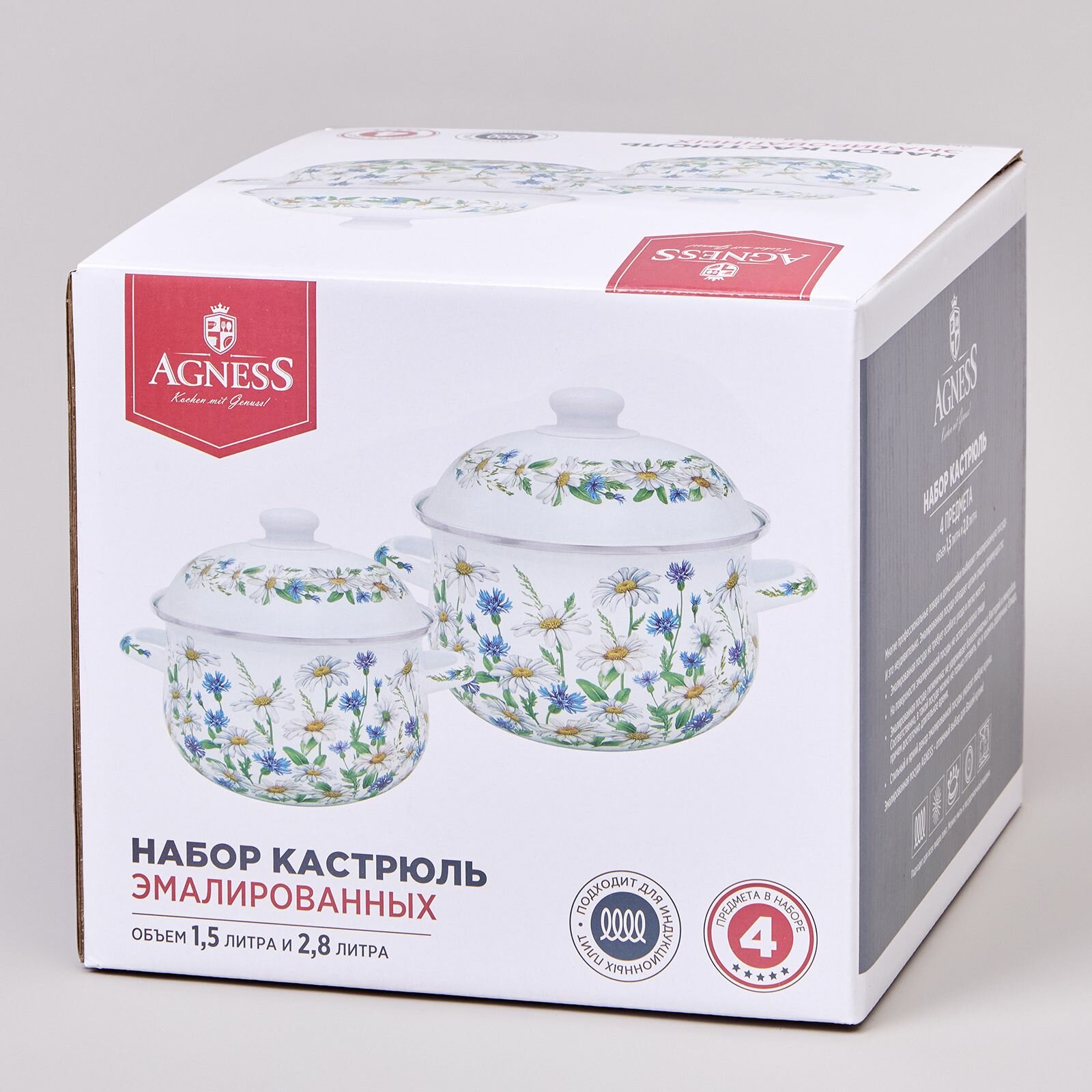 Купить Набор кастрюль Agness "Sentiment", эмалированные, набор (1.5 л и 2.8 л), для всех видов плит, с крышкой