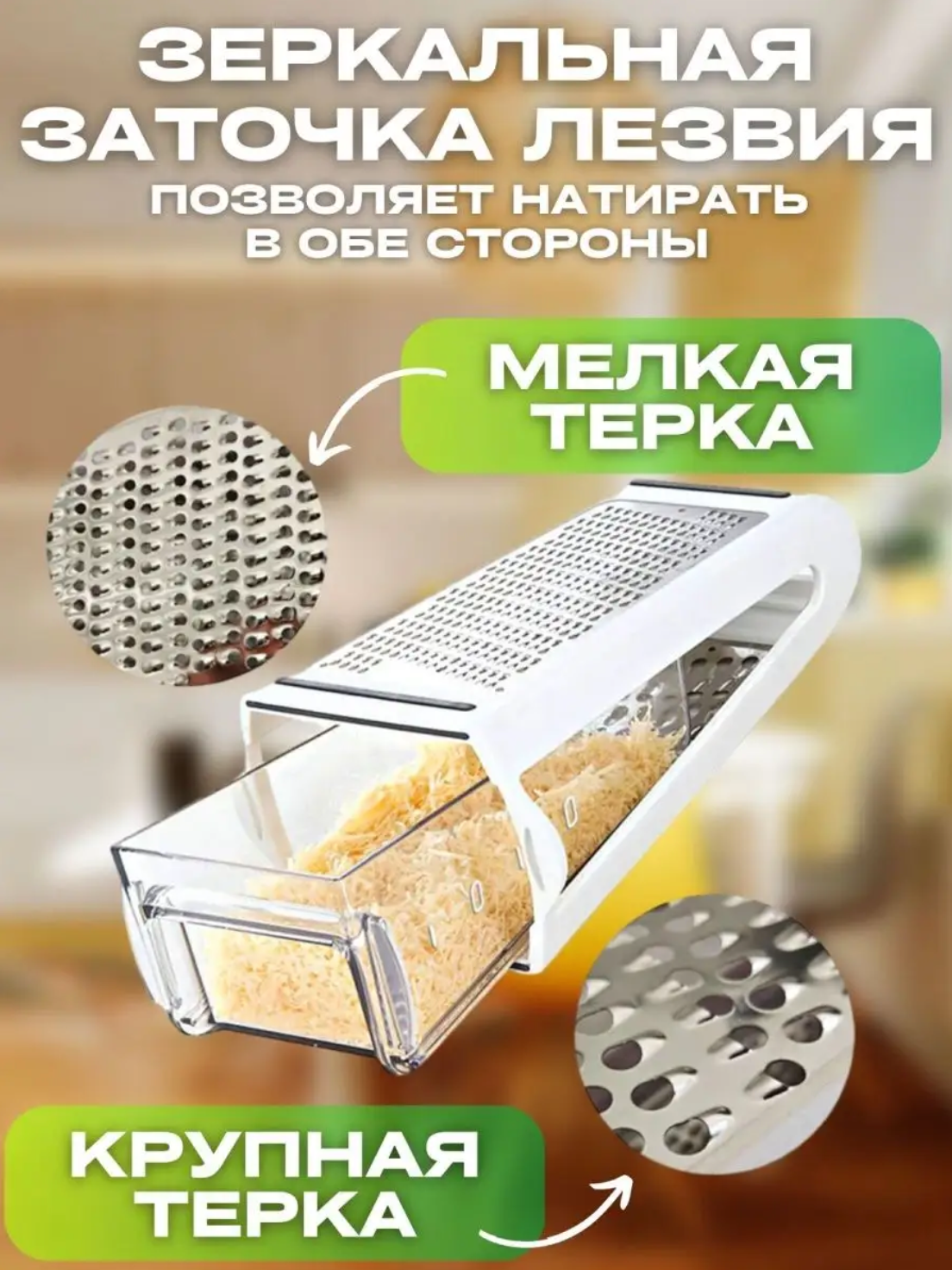 Купить Двустороння терка 2 в 1 с контейнером, белая / терка для кухни / терка с контейнером