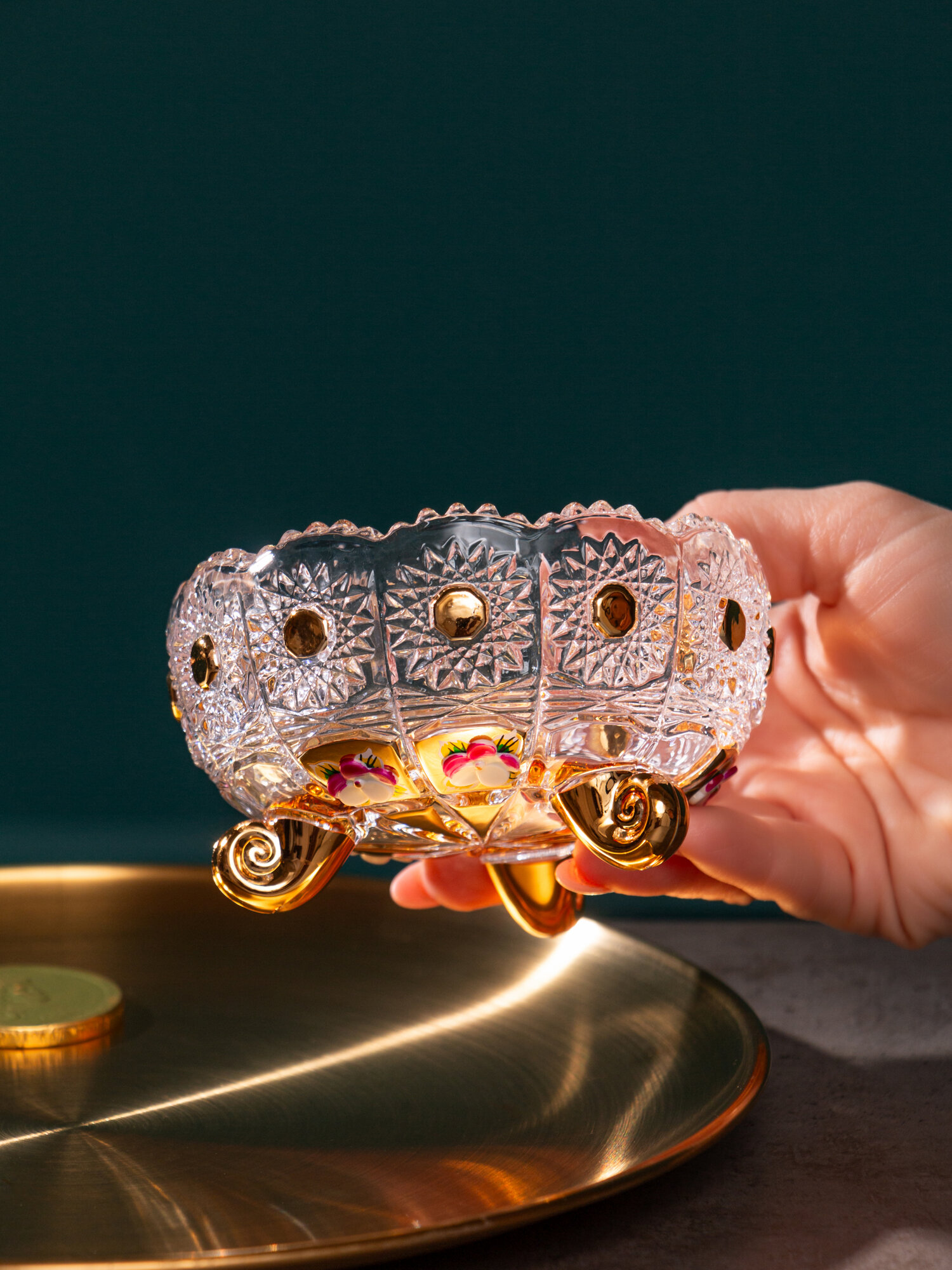 Конфетница 11 см на 3-х ножках "LEFARD GOLD GLASS" / 187578