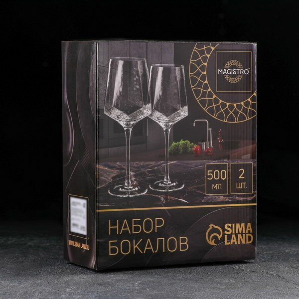 Набор бокалов для вина Magistro "Дарио", 500 мл, 7,3*25 см, 2 шт, цвет прозрачный