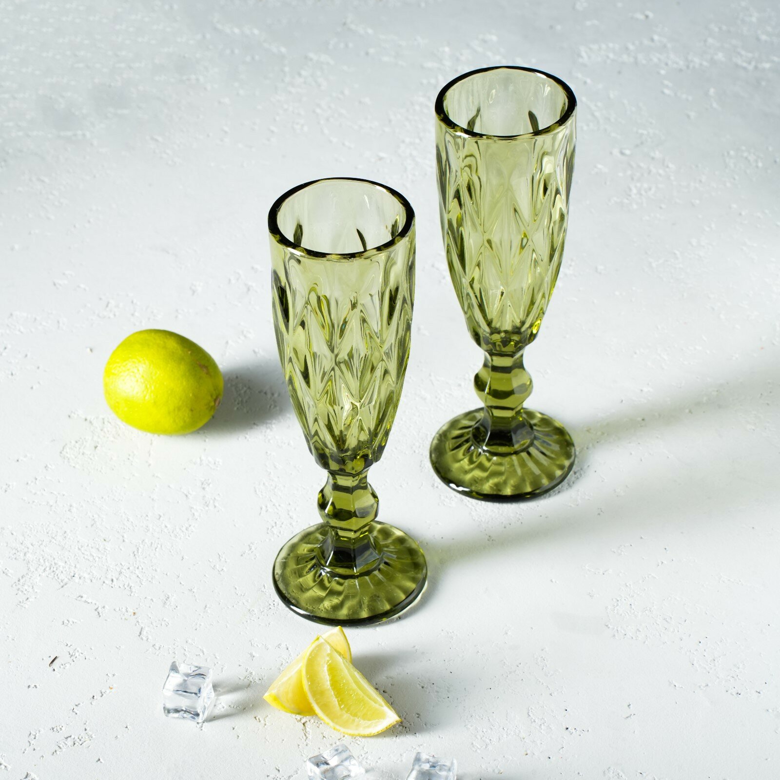 Бокалы для шампанского "Ла-Манш", 160 мл, 7x20 см, стекло, зелёные, набор 6 шт