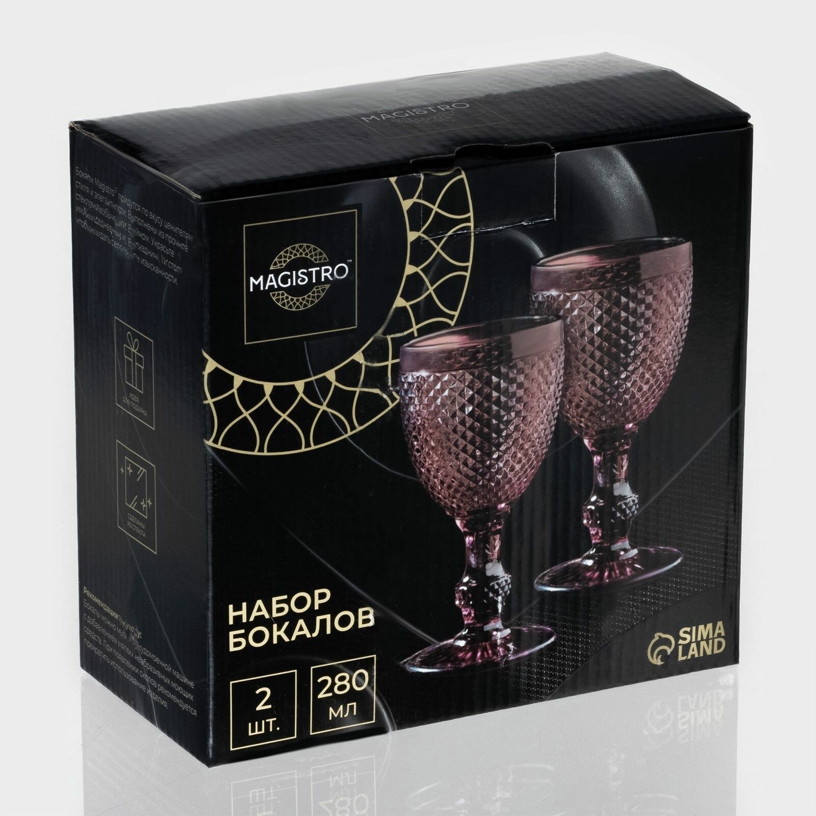 Бокалы для вина Magistro «Вилеро», 280 мл, 8×15,5 см, набор 2 шт, стекло, розовые