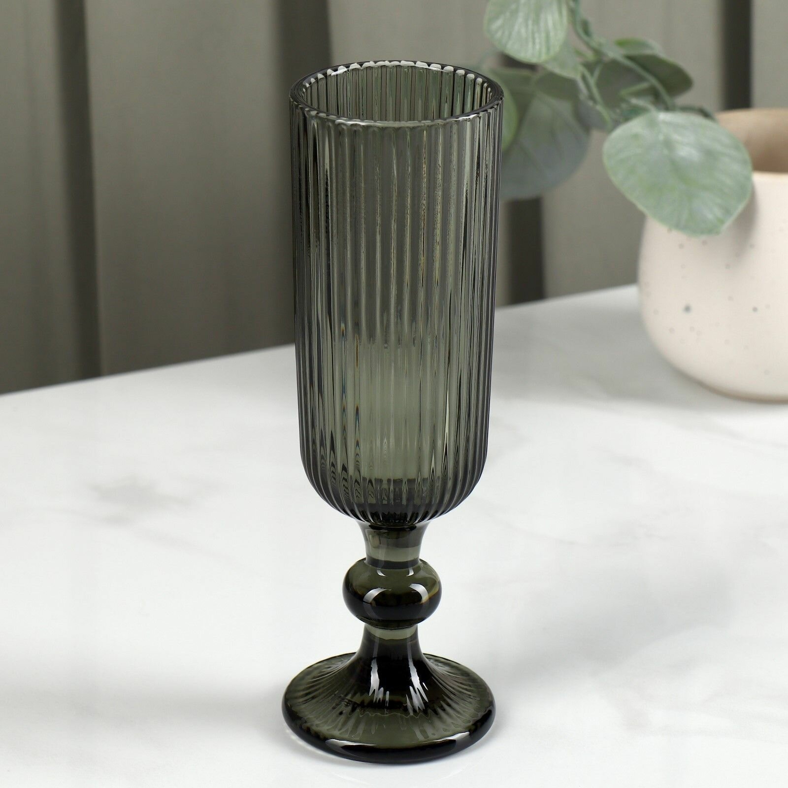 Купить Бокал стеклянный для шампанского Magistro "Грани", 150 мл, 5,5х18,5 см, цвет графит