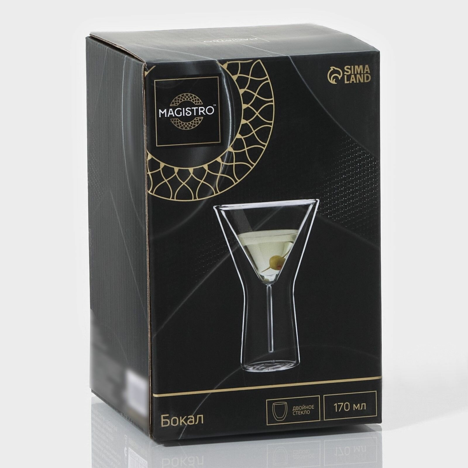 Купить Бокал для мартини с двойными стенками Magistro Айс , 170 мл, 10,3 15,7 см, стекло, прозрачный