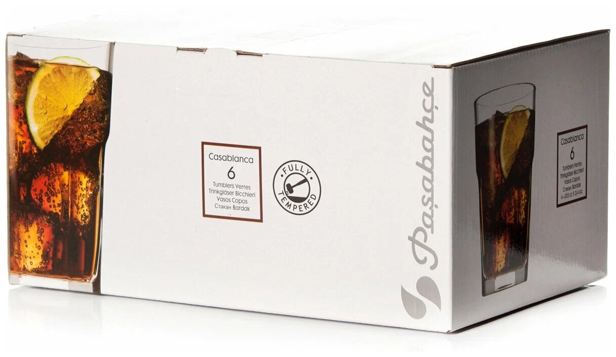 | Комплектация | Набор стаканов 6 шт Pasabahce Casablanca, V=355 мл (52708BT), 1 наб. |