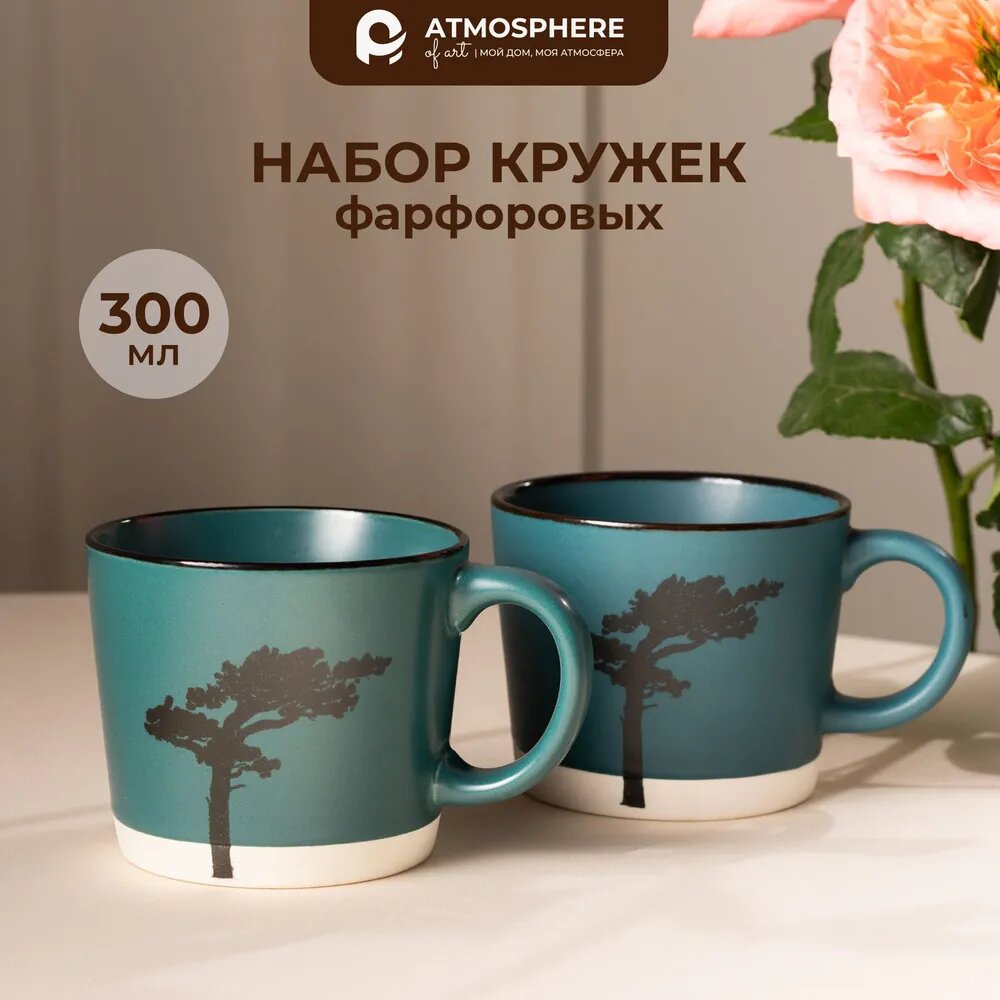 Купить Набор фарфоровых кружек Atmosphere of Art "Nordic" / 300мл/ 2шт/сине-зеленый