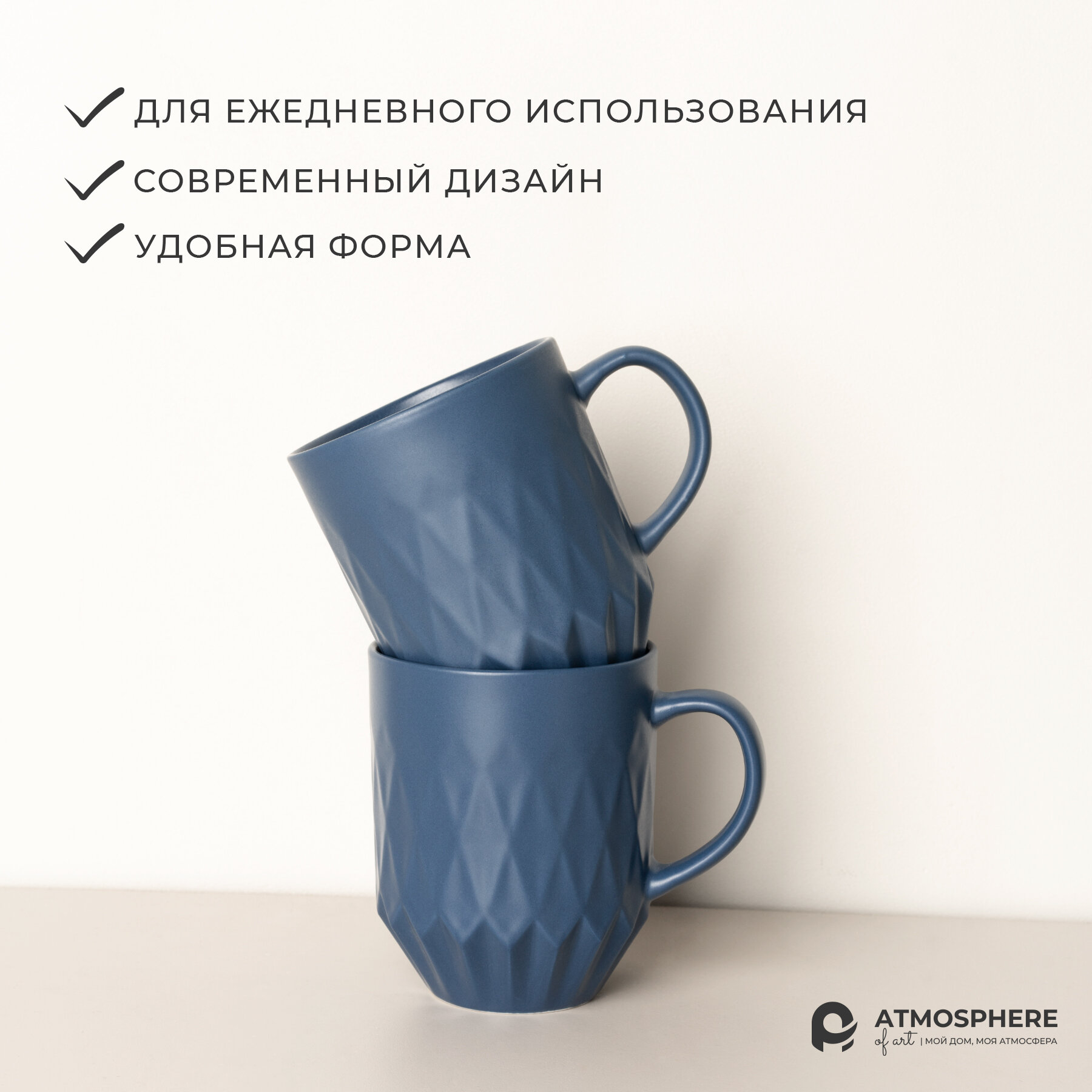 Купить Набор фарфоровых кружек Atmosphere of Art "Rhombus" - 350мл, 2шт, синий