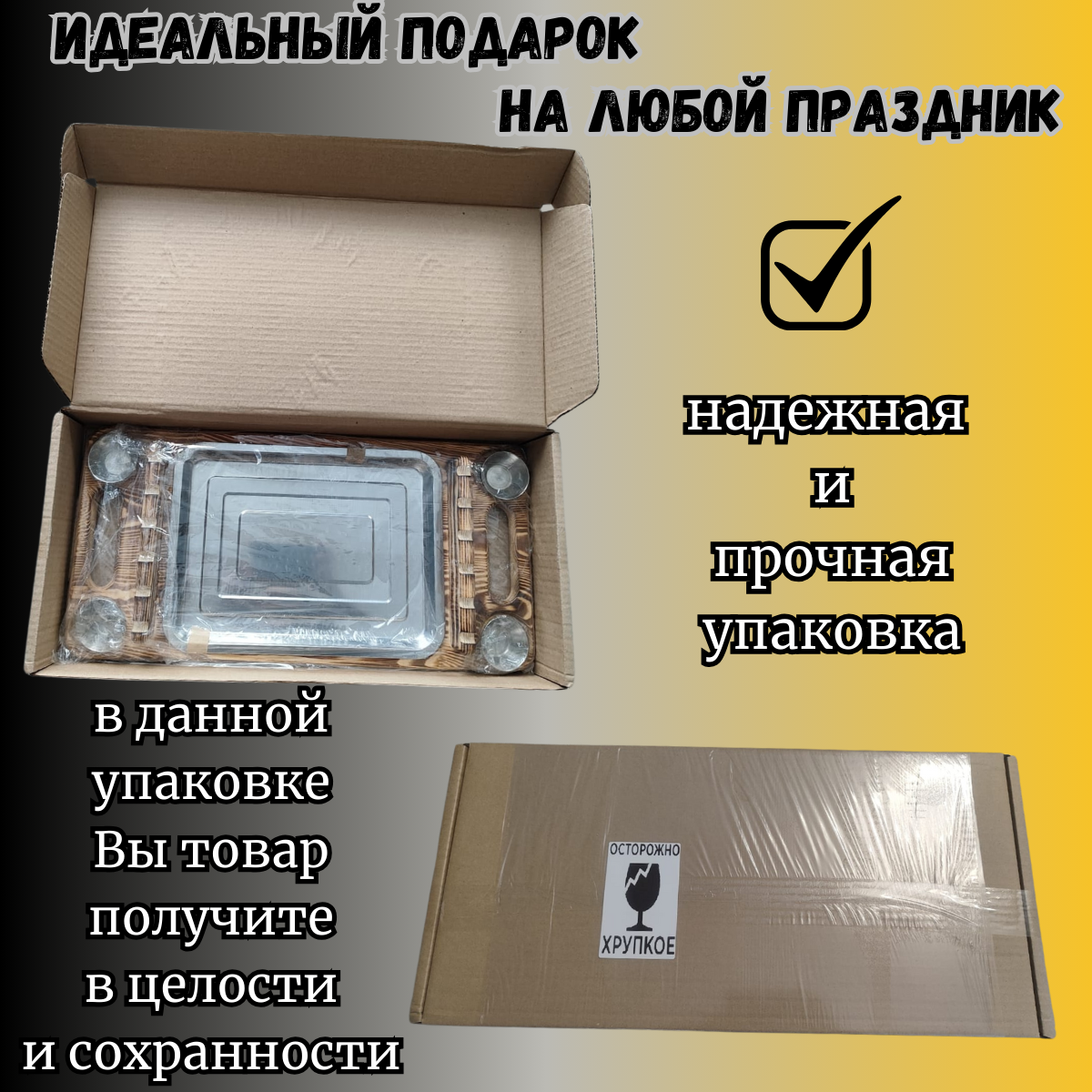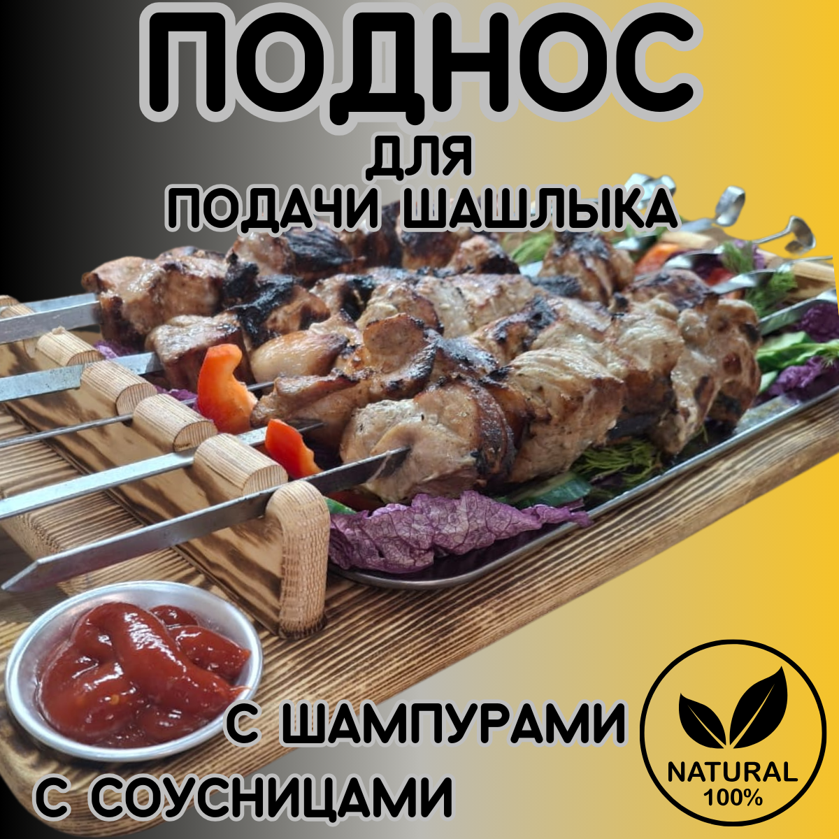 Поднос для подачи шашлыка с гастроёмкостью, 6 шампуров, 4 соусницы, 12 предметов интересное: