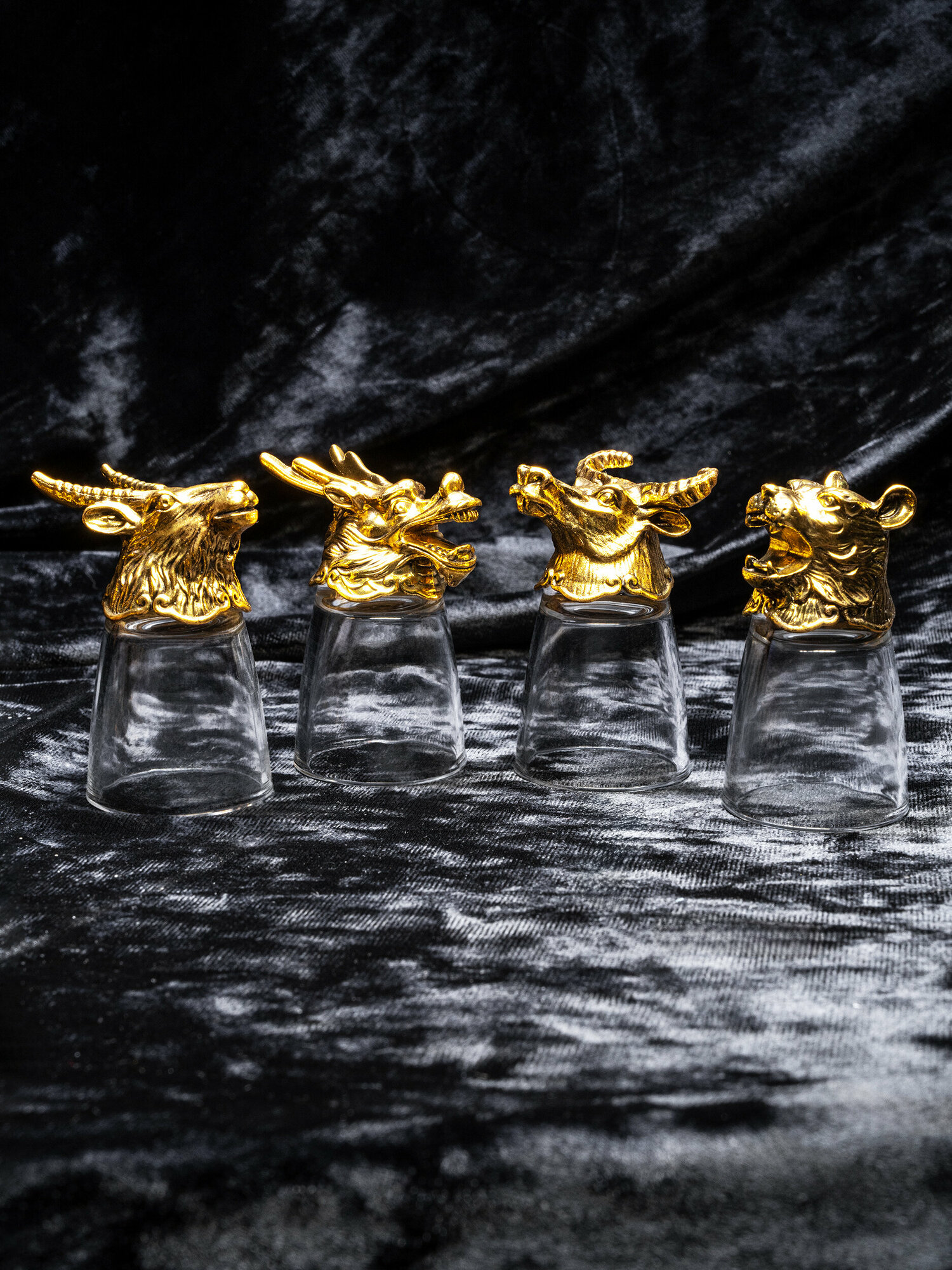 Рюмки-перевертыши с подставкой из латуни, стекла и металла 12 штук, 30мл