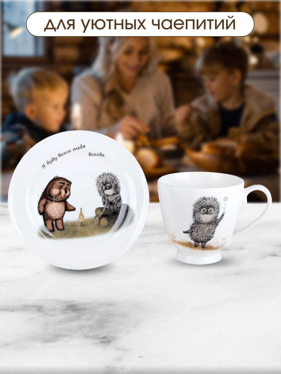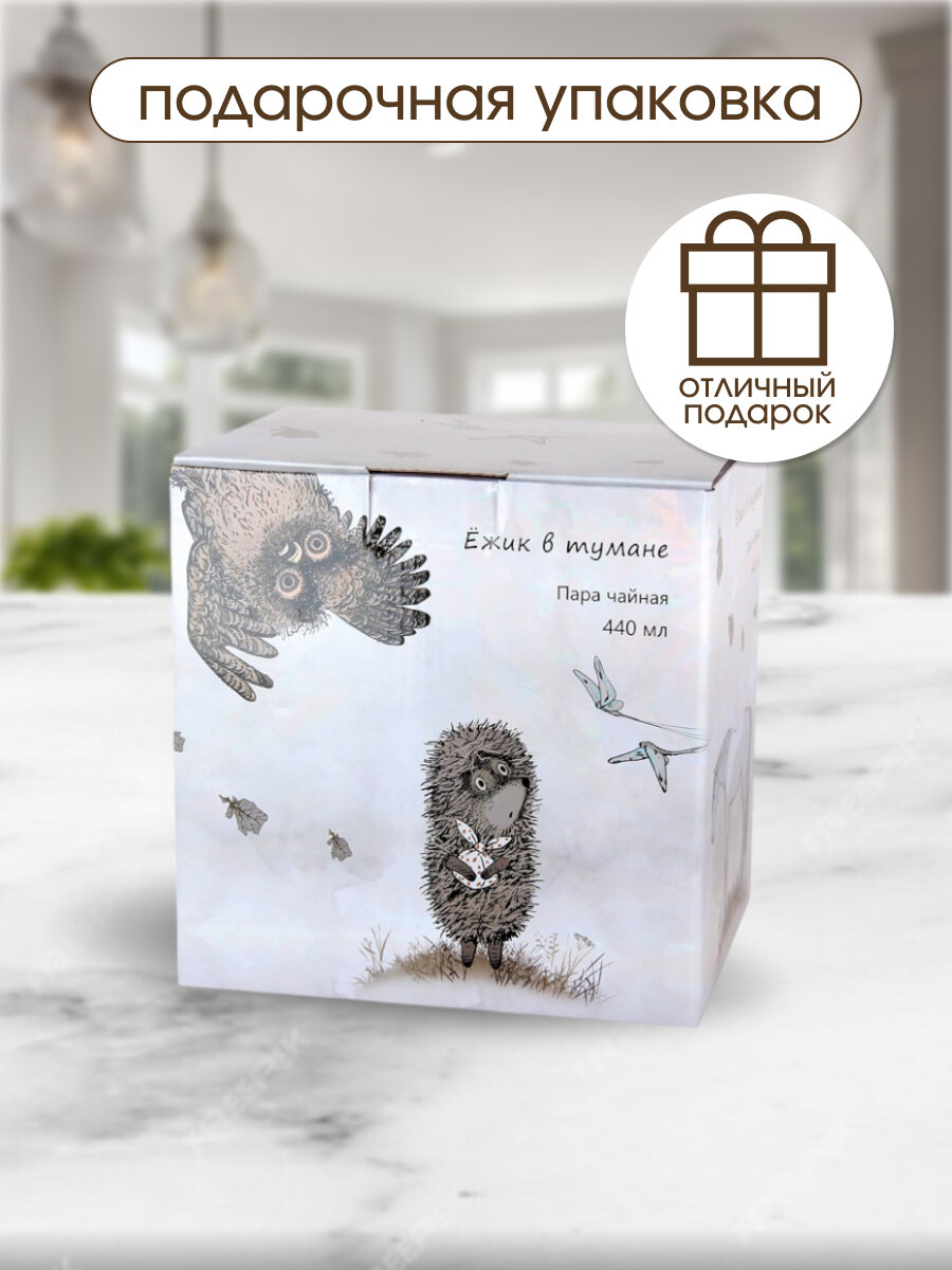 Чайная пара фарфор 440 мл Ежик в тумане в подарочной упаковке