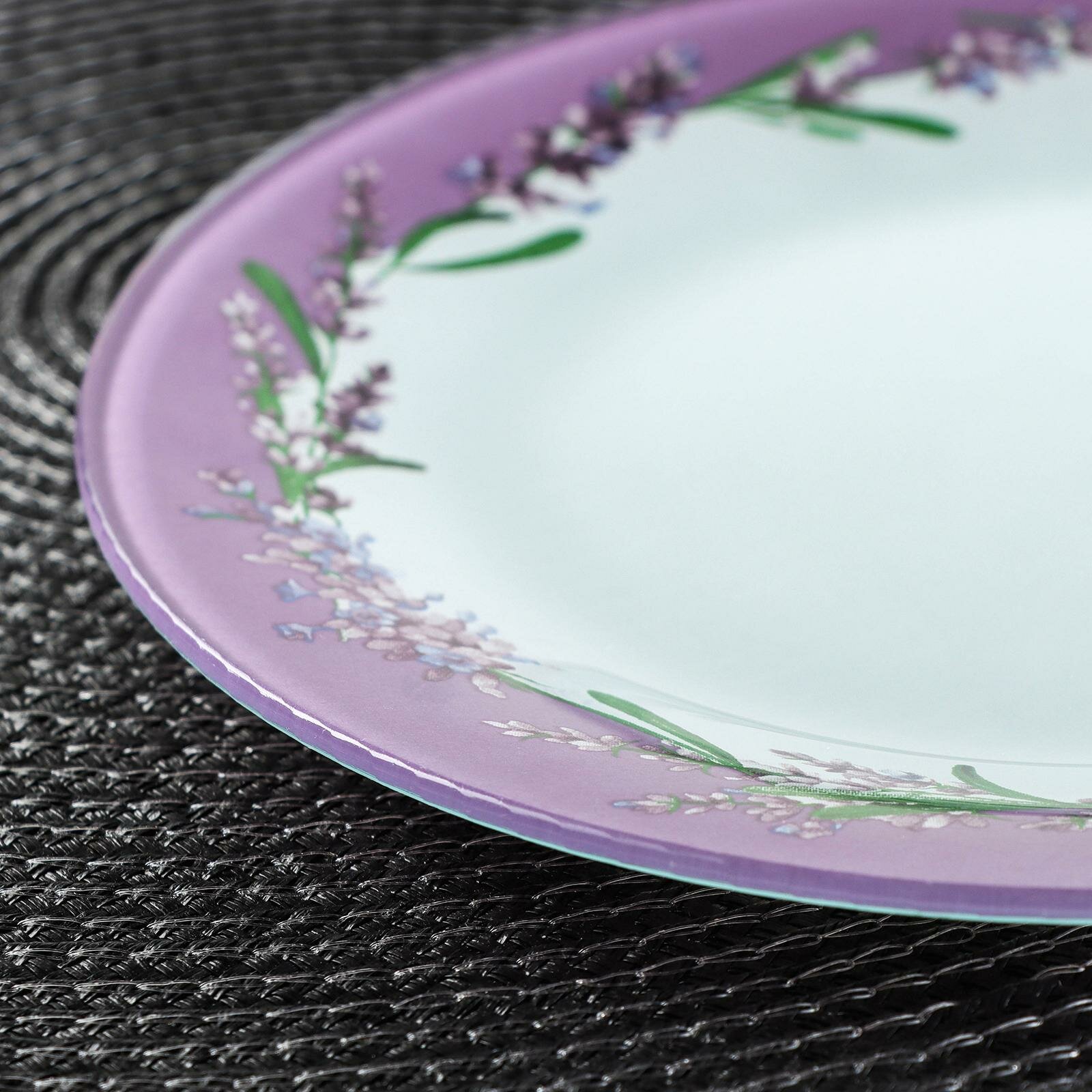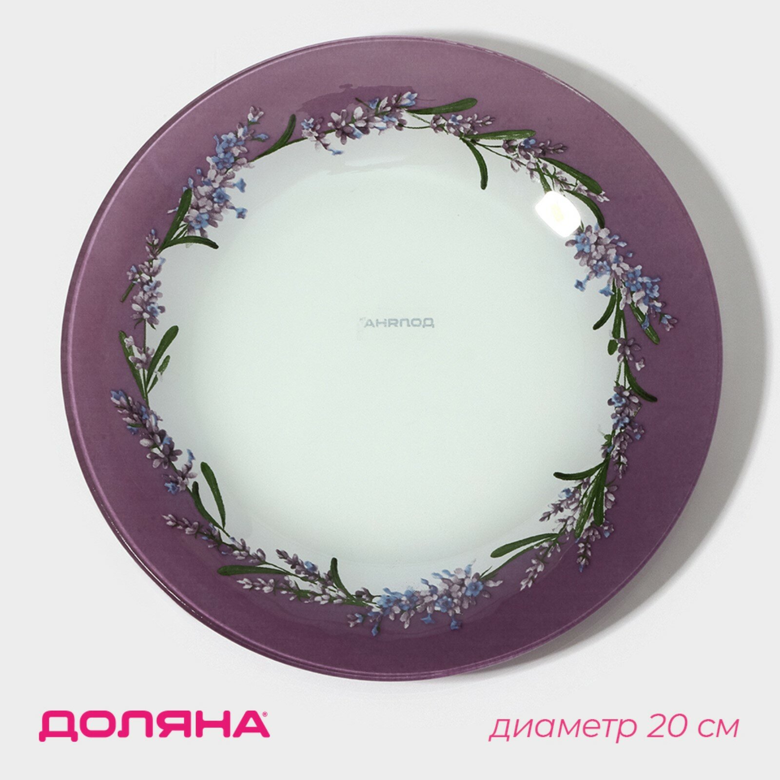 Купить Тарелка десертная Доляна «Веточка лаванды», d=20 см, стекло, цвет фиолетовый