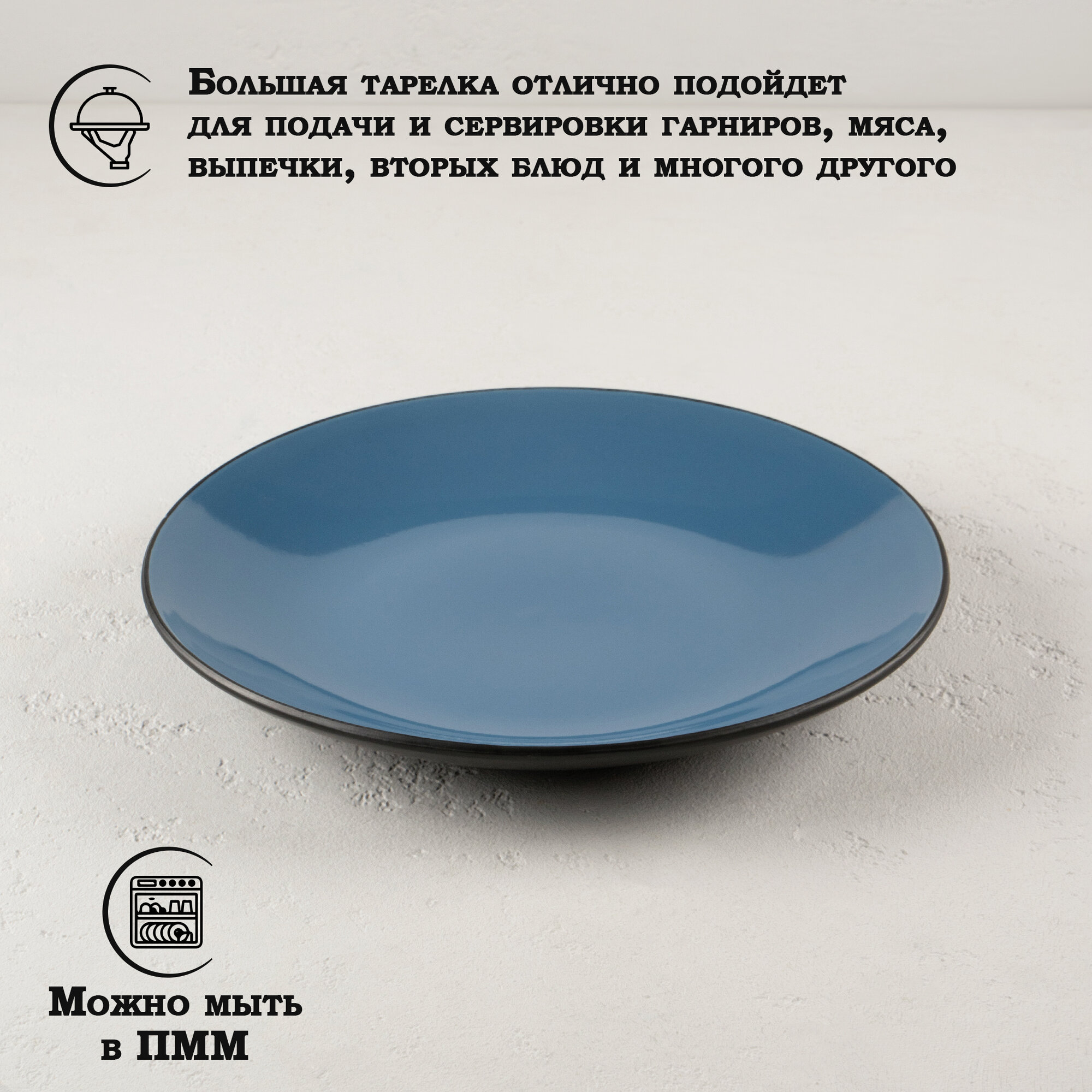 Купить Тарелка керамическая обеденная для сервировки "Глянец" 27 см, цвет синий
