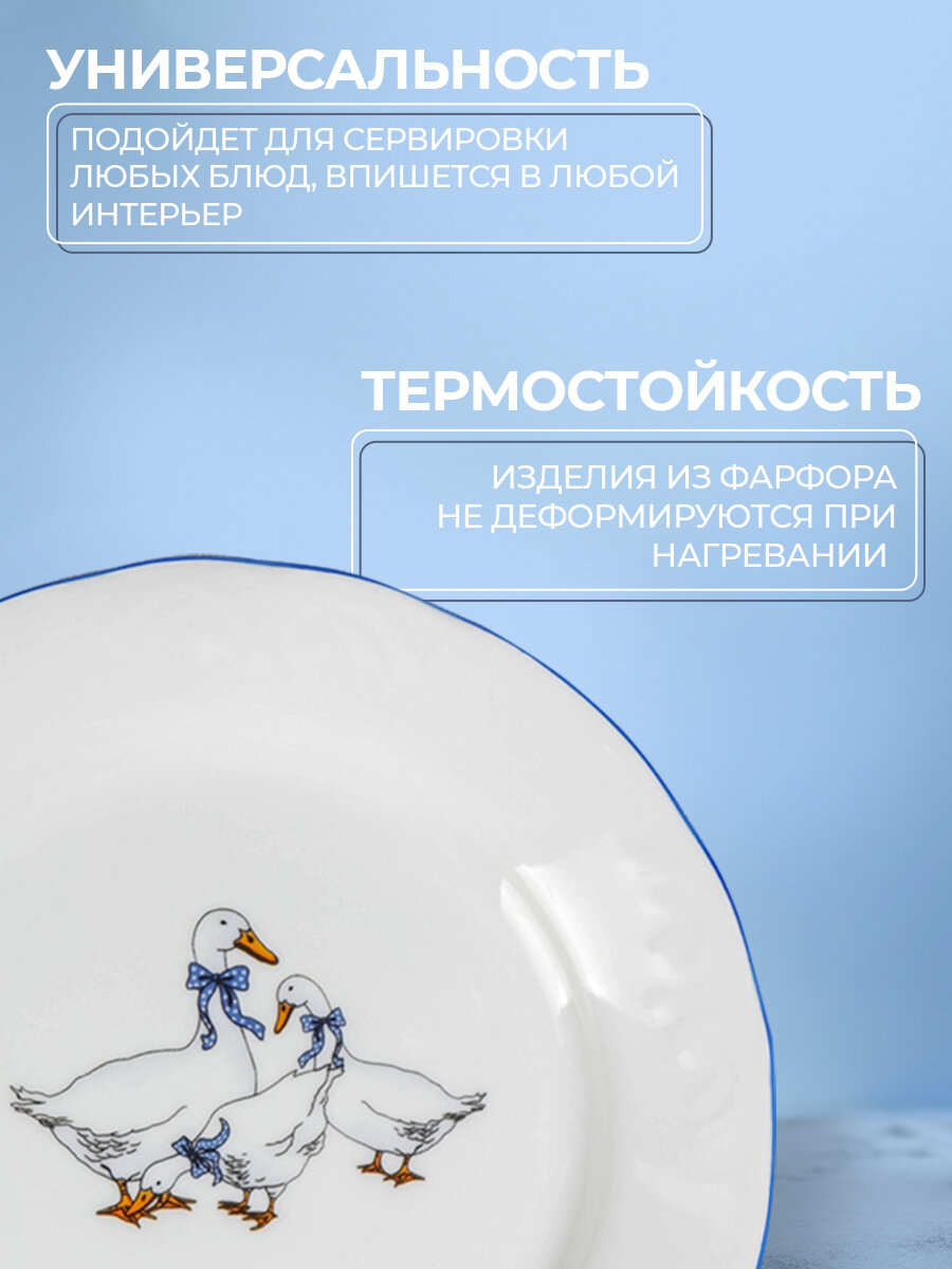 Тарелка фарфоровая обеденная Добрушский фарфоровый завод «Гуси», d=20 см, узор МИКС, цвет белый интересное: