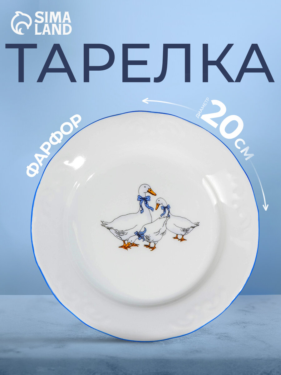 Тарелка «Гуси», d=20 см, белая, фарфор
