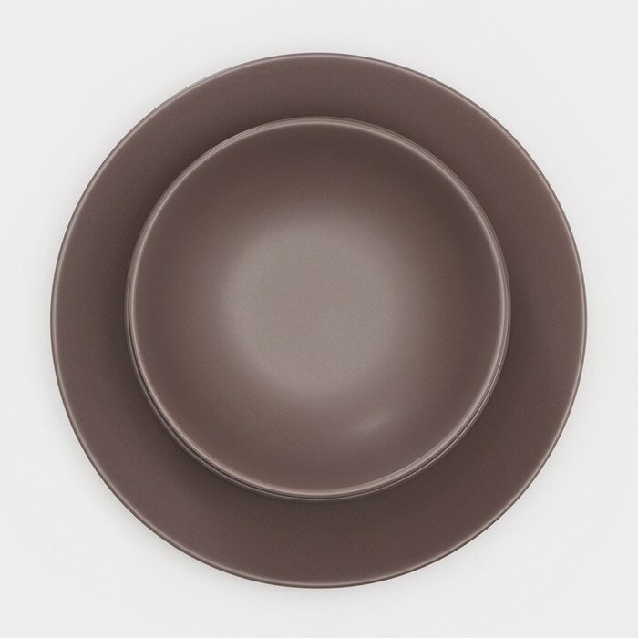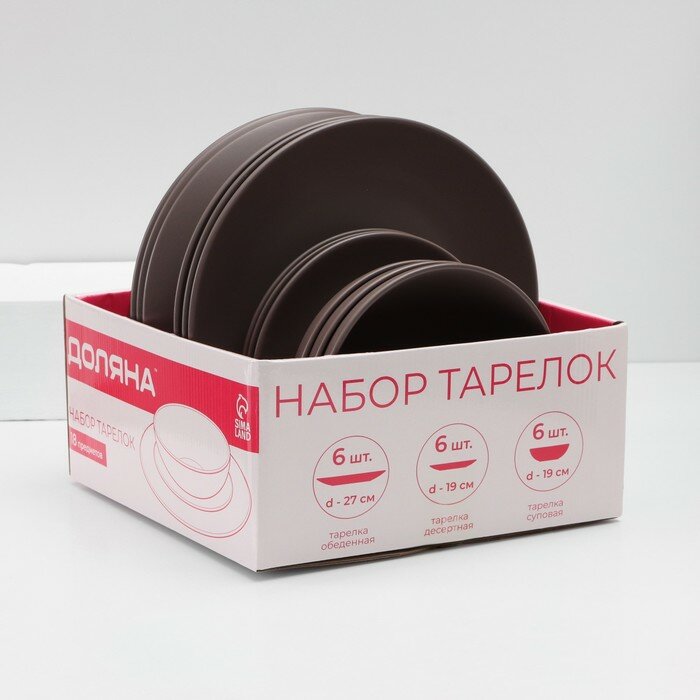 Купить Набор тарелок Доляна «Пастель», 18 предметов: 6 тарелок d=19 см, 6 тарелок d=27 см, 6 мисок d=19 см, керамика, цвет коричневый