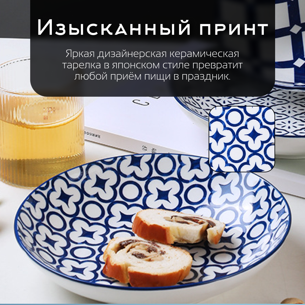 Керамическая тарелка Homium, Japanese Collection в японском стиле, обеденная тарелка с рисунком, голубой, D20см, набор 2шт.