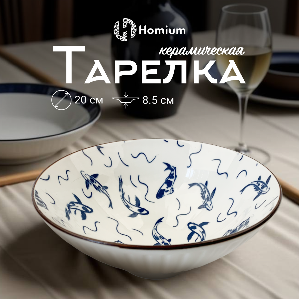 Керамическая тарелка Homium, Japanese Collection в японском стиле, обеденная тарелка с рисунком, голубой, D20см, набор 2шт.