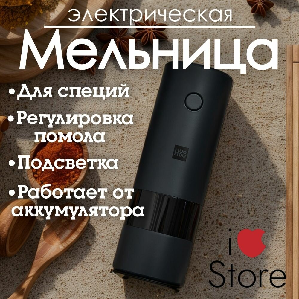 Мельница для специй электрическая Xiaomi HuoHou Electric Grinder со встроенным аккумулятором, черная интересное: