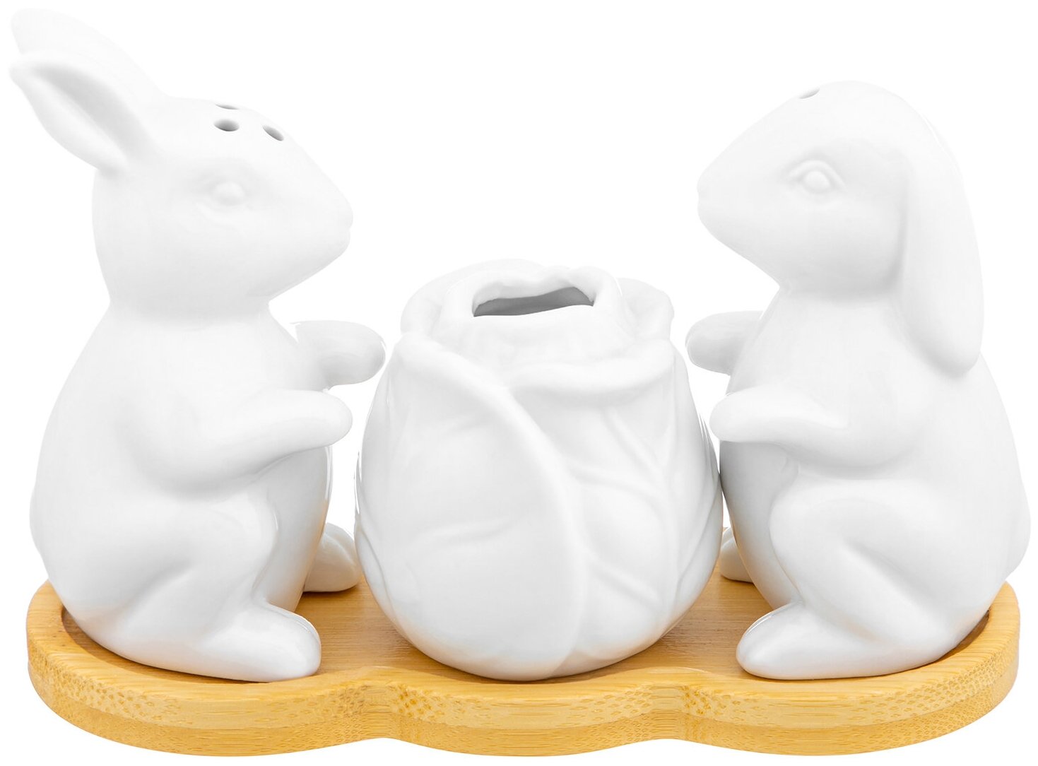 Купить Набор для специй 3 пр. 14х6х9,5 см Elan Gallery Кролики с капустой, на подставке, с зубочистками в комплекте, Пасха