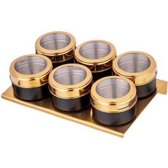 Набор для специй agness 7 пр. черное золото на магнитах+метал. Подставка 20*13*5 см KSG-912-034