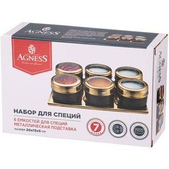 Купить Набор для специй Agness "черное золото", 7 шт. на магнитах, в т. ч. метал. подставка 912-034