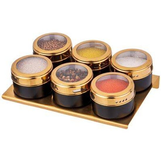 Набор для специй Agness, серия "Черное золото", 6 пр. на магнитах, метал. подставка 20х13х5 см (912-034)