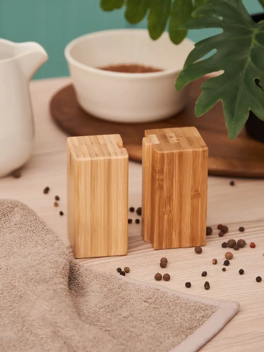Набор для специй, 7*7см, 2 шт, солонка и перечница, бамбук