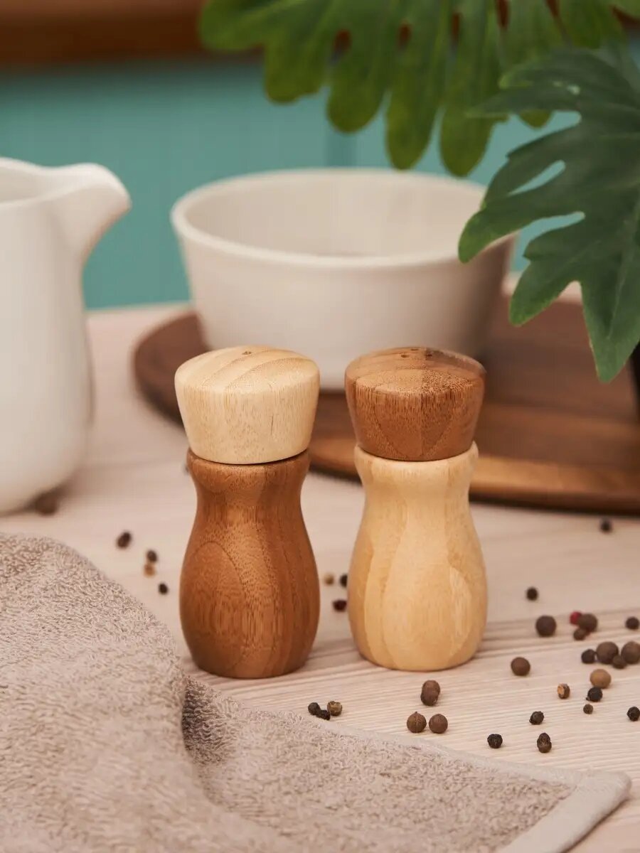 Набор для специй, 7*7см, 2 шт, солонка и перечница, бамбук