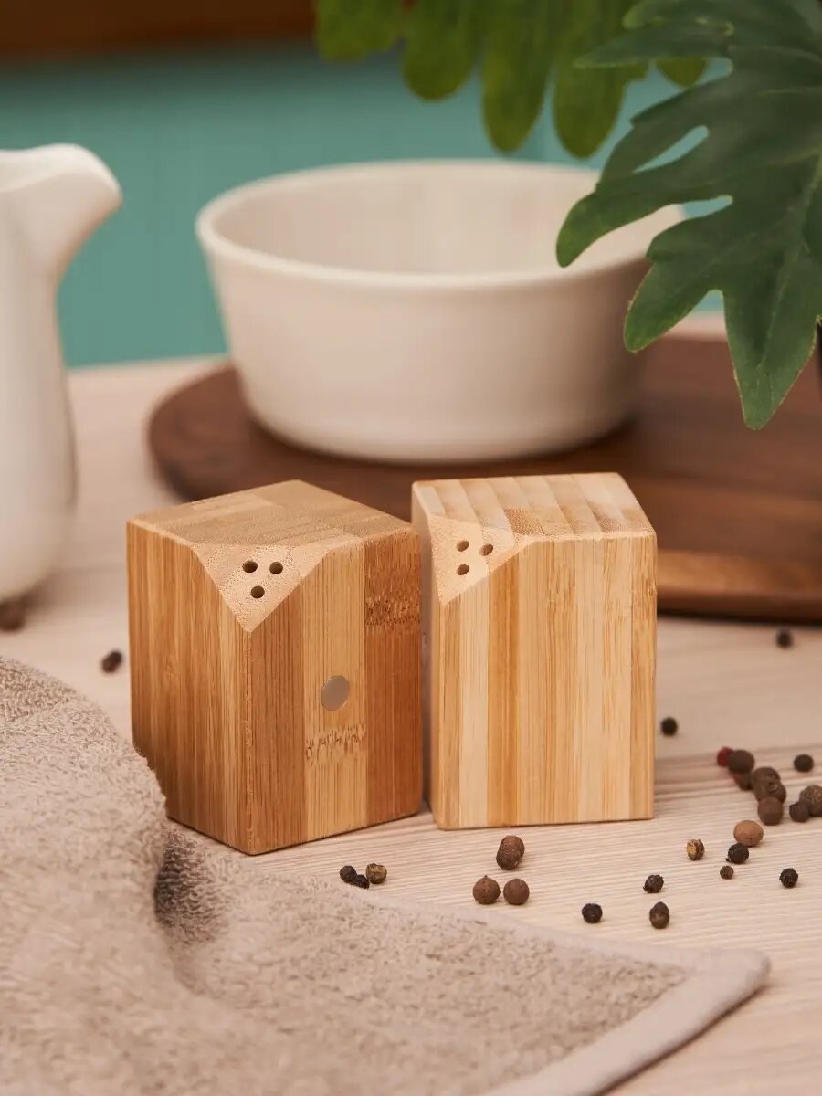 Набор для специй, 7*7см, 2 шт, солонка и перечница, бамбук