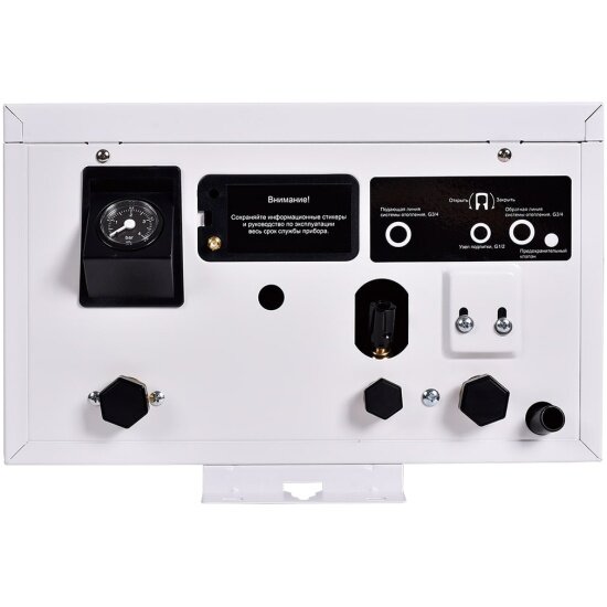 | Особенности | воздухоотводчик, встроенный расширительный бак, встроенный циркуляционный насос, манометр, предохранительный клапан, разъем для подключения внешнего управления, термометр |