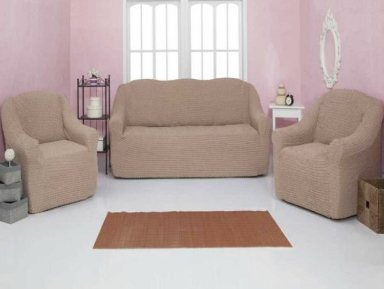 Комплект чехлов для мягкой мебели диван и 2 кресла без оборки, универсальный, на резинке интересное: