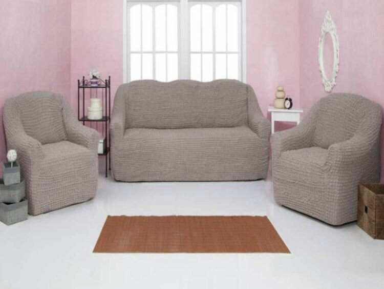 Комплект чехлов для мягкой мебели диван и 2 кресла без оборки, универсальный, на резинке. интересное: