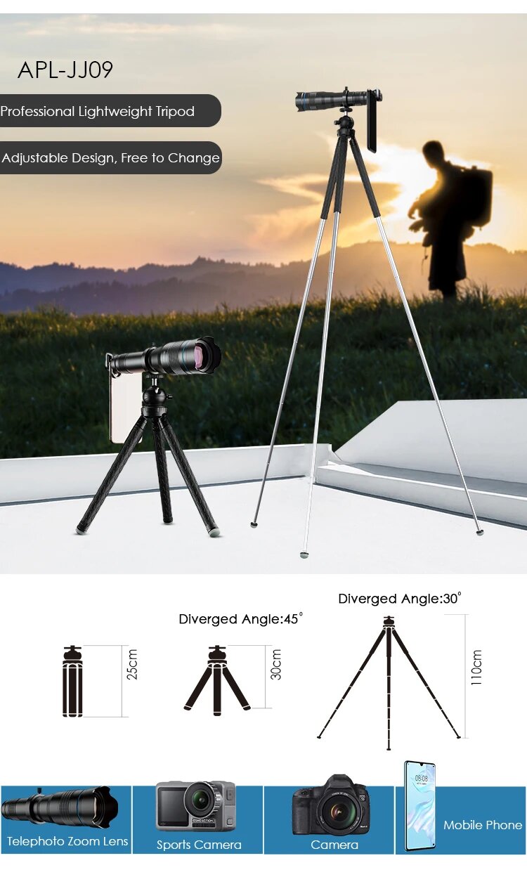 Телескопический телескоп APEXEL 60X мобильный телефон с увеличением и выдвижным штативом для iPhone, Samsung, всех смартфонов, with tripod remote