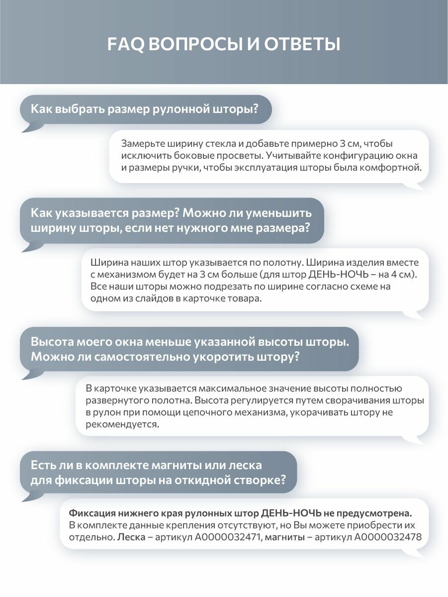 | Комплектация | Рулонная штора - 1 шт., монтажный комплект, инструкция |
