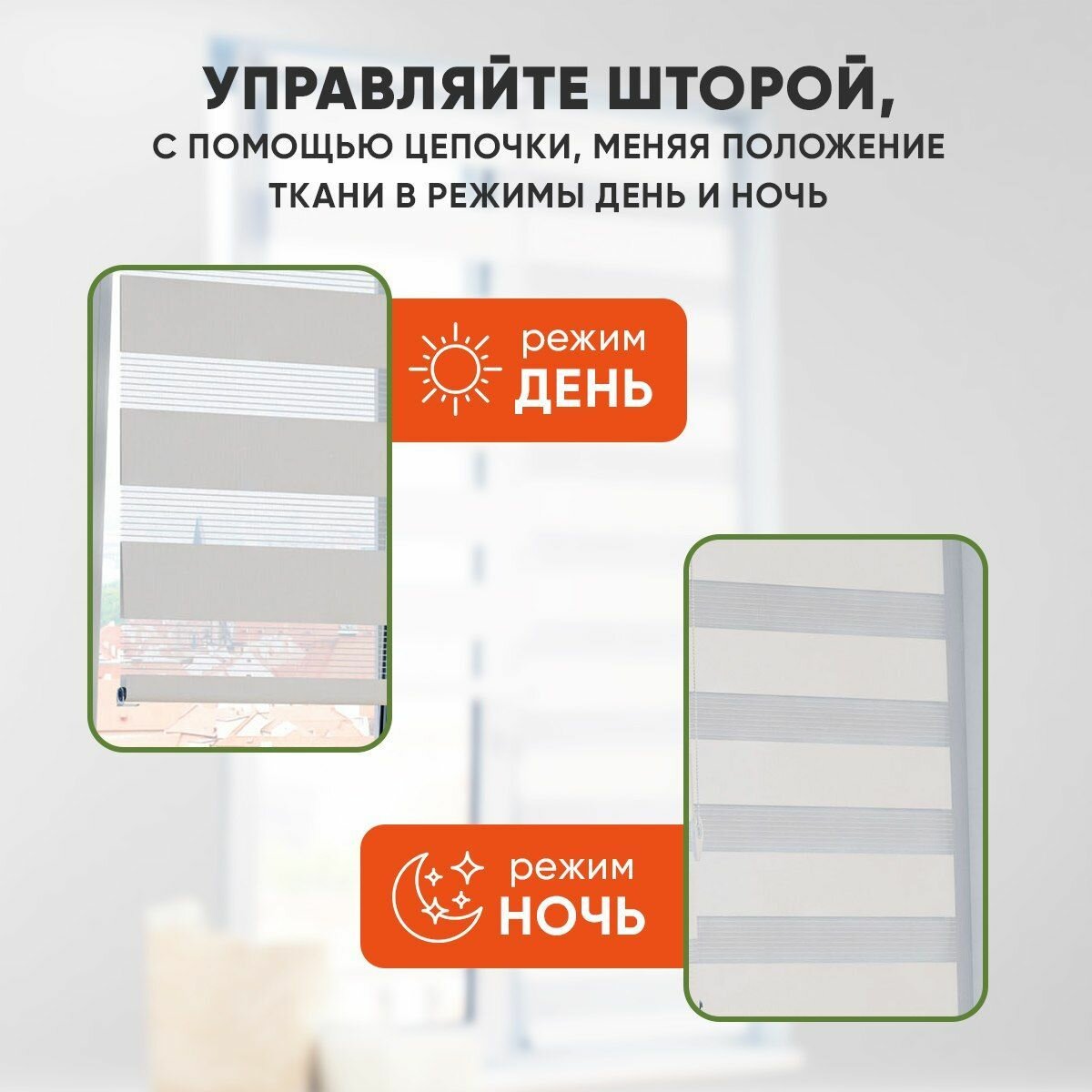 Рулонные шторы день ночь 60 на 160 см бежевые двойные на окно
