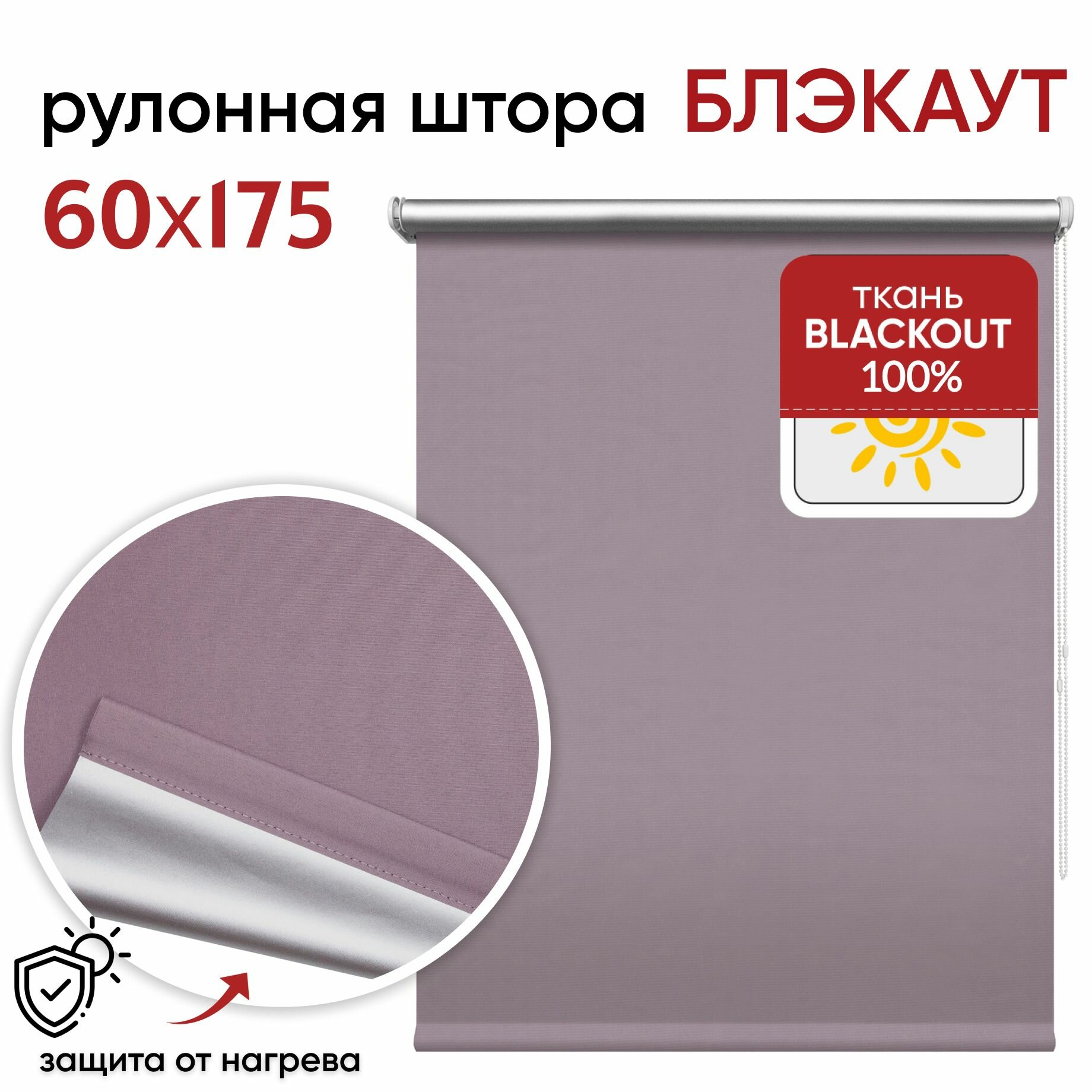 СохранитьРулонная штора УЮТ блэкаут светонепроницаемая 60 см высота 175 см, Сильвер сиреневый, рулонные жалюзи, затемнение 100% интересное: