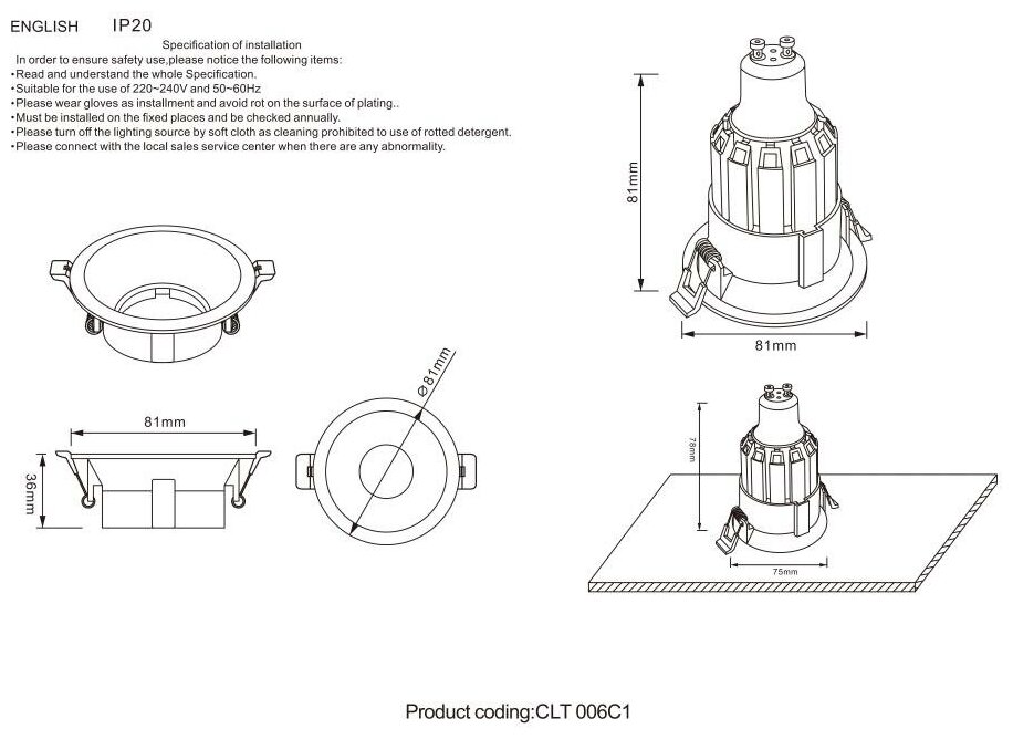 | Ширина/диаметр врезного отверстия | 75 мм |