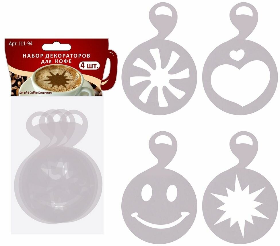 Купить Трафареты для кофе Мультидом пластик, 9х12,5 см, 4 шт (J11-94)