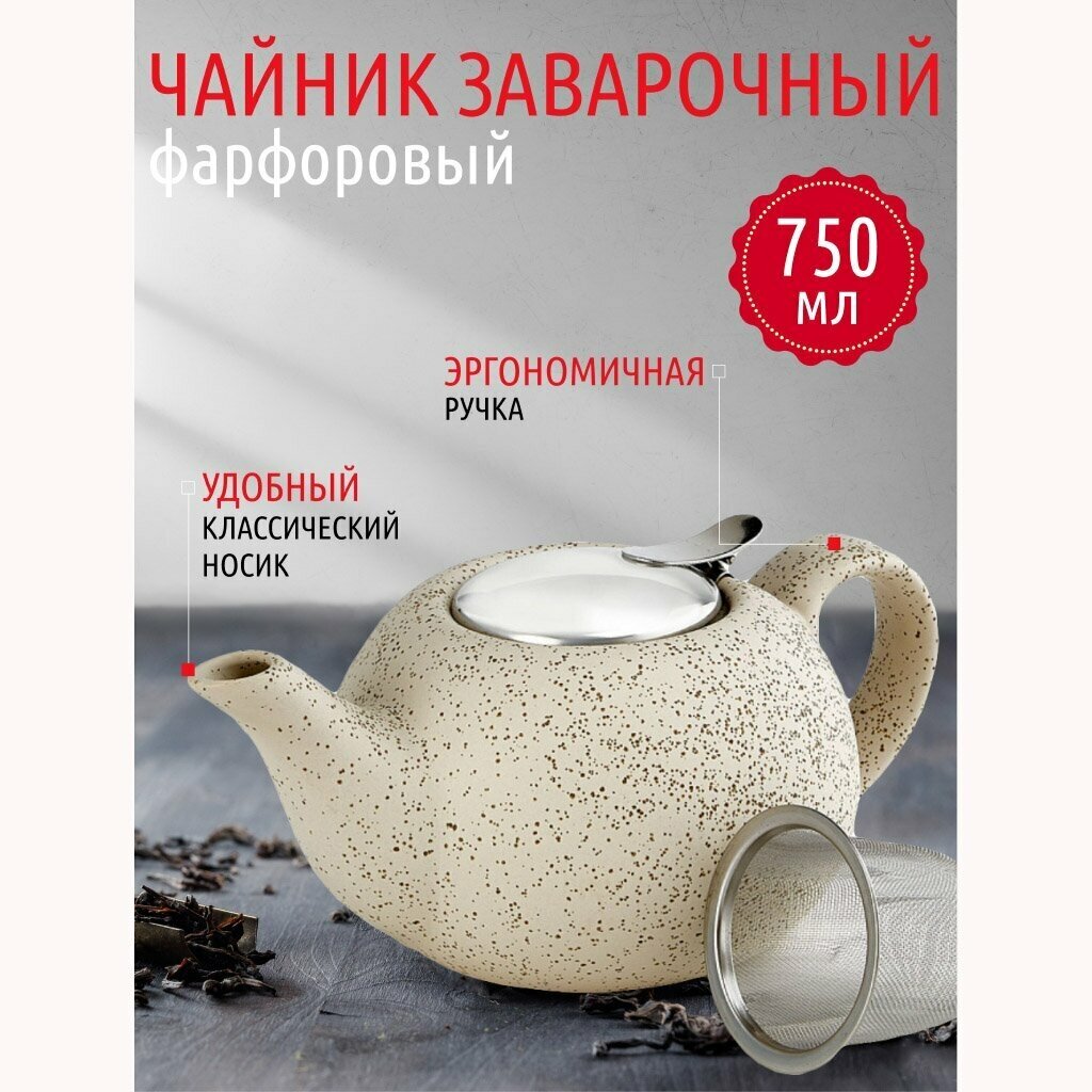 Заварочный чайник, керамический, Kitfort F19-012R, 750 мл, металлический фильтр, бежевый интересное: