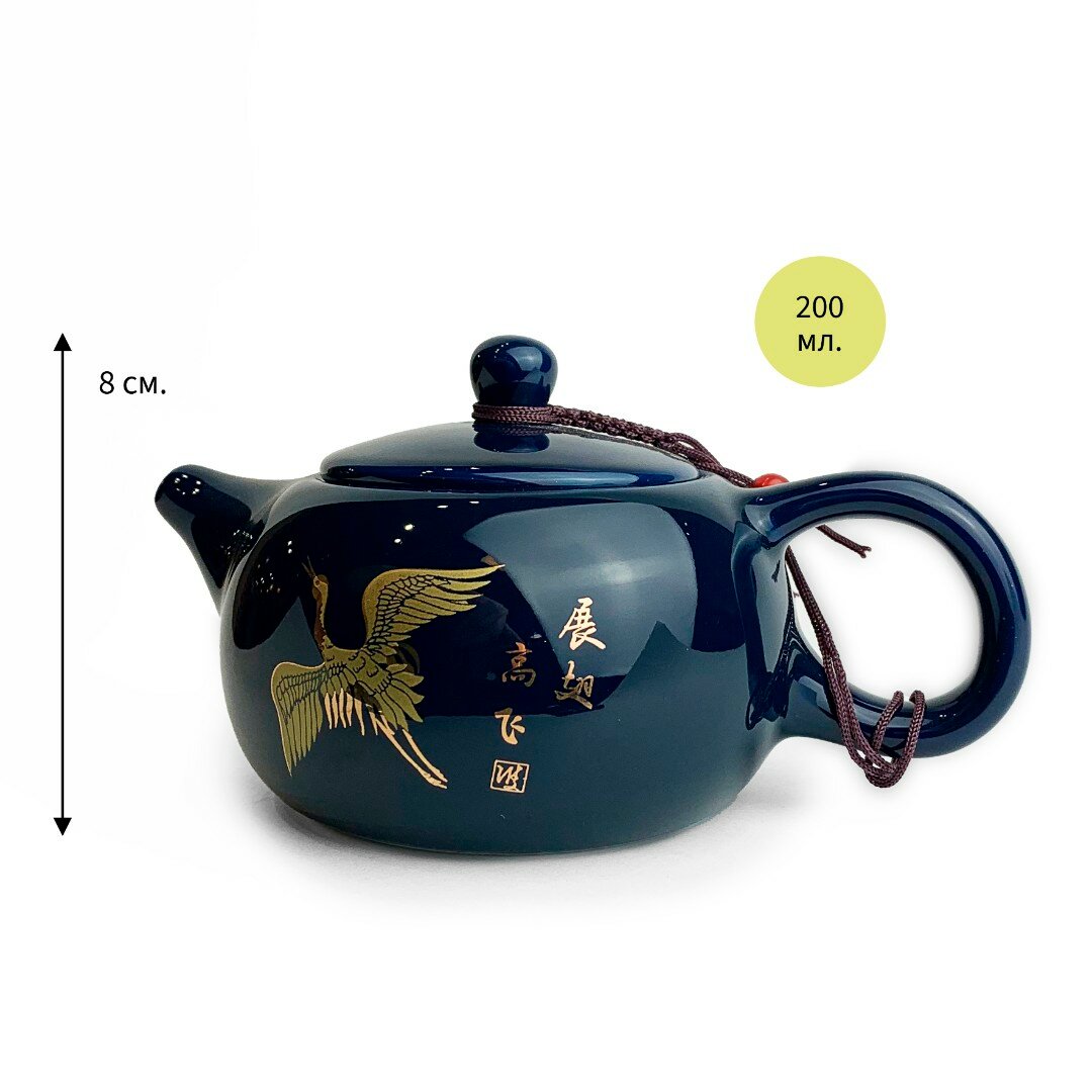 Чайник индиго - Расправь крылья, фарфор, 200 мл. интересное: