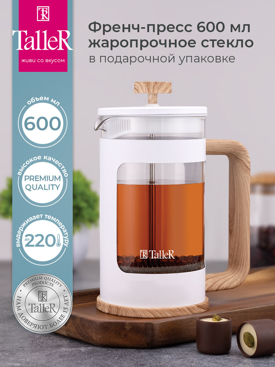 Френч-пресс Taller TR-32340 Дженис 600 мл, жаропрочное стекло интересное: