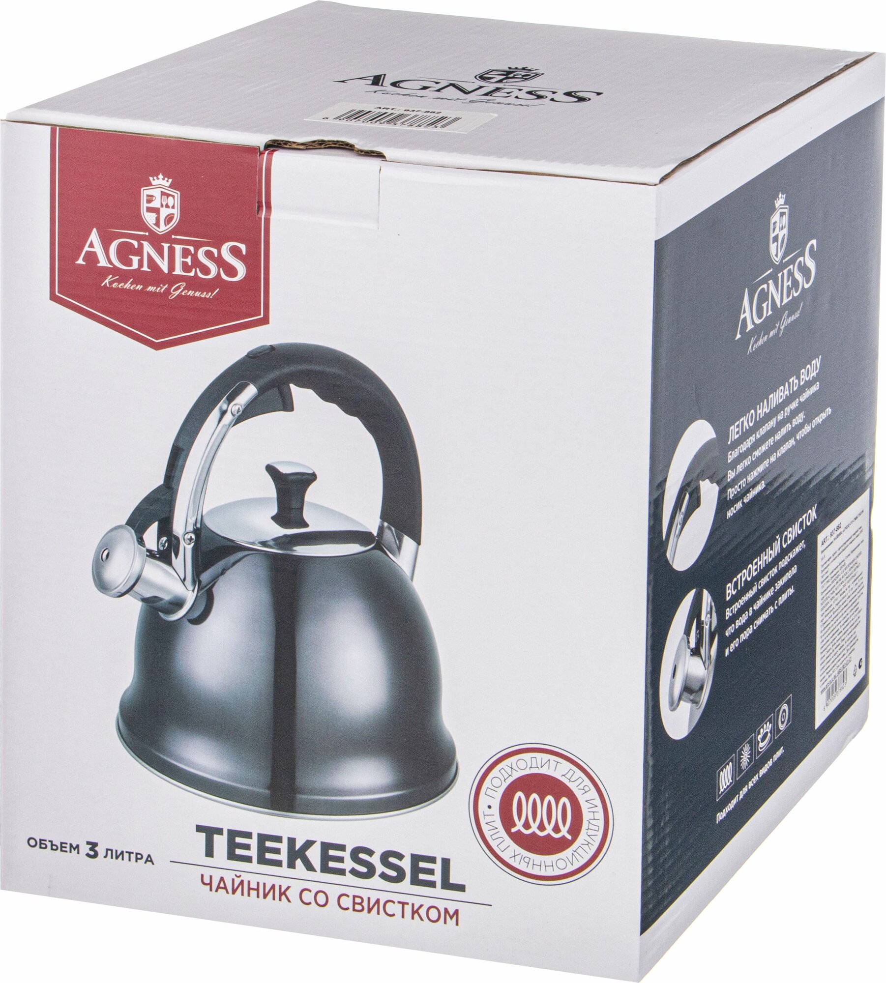 Чайник со свистком Agness 3 л, для всех видов плит, нержавеющая сталь