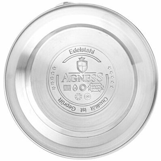Чайник для плиты Agness со свистком 3 л., из нержавеющей стали, термоаккумулирующее дно, индукционное дно
