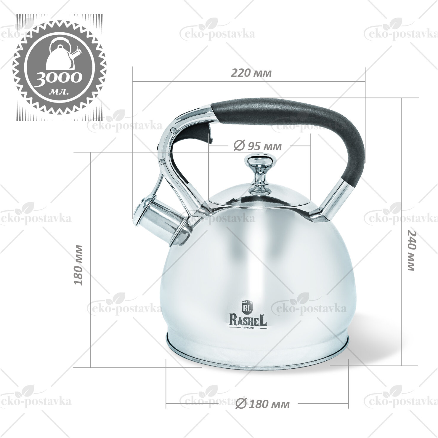 Купить Чайник из нержавеющей стали со свистком Rashel 3 литра для газовой, электрической и индукционной плиты