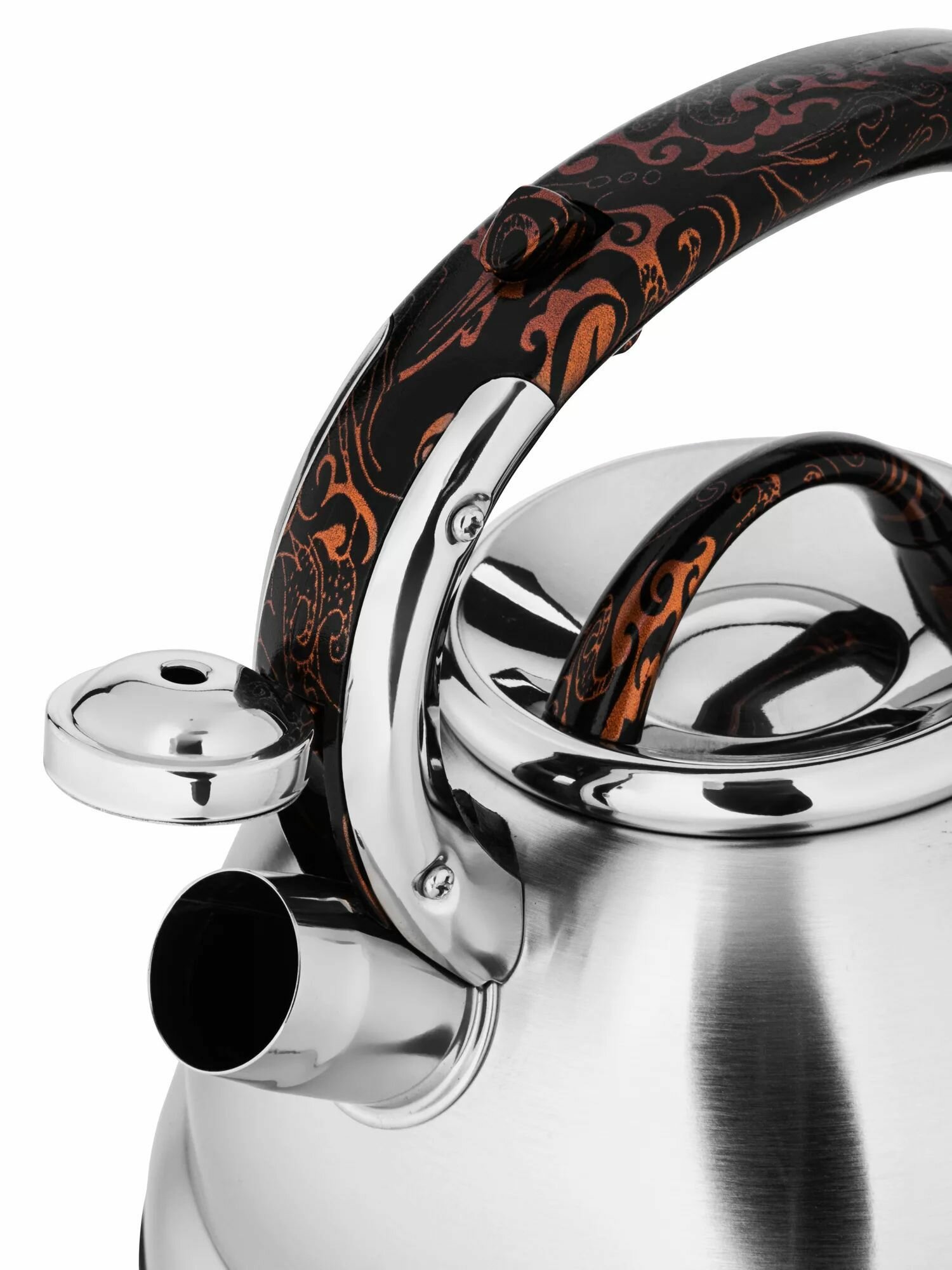 Чайник для плиты со свистком нержавеющая сталь ,3.3 Л c черной ручкой