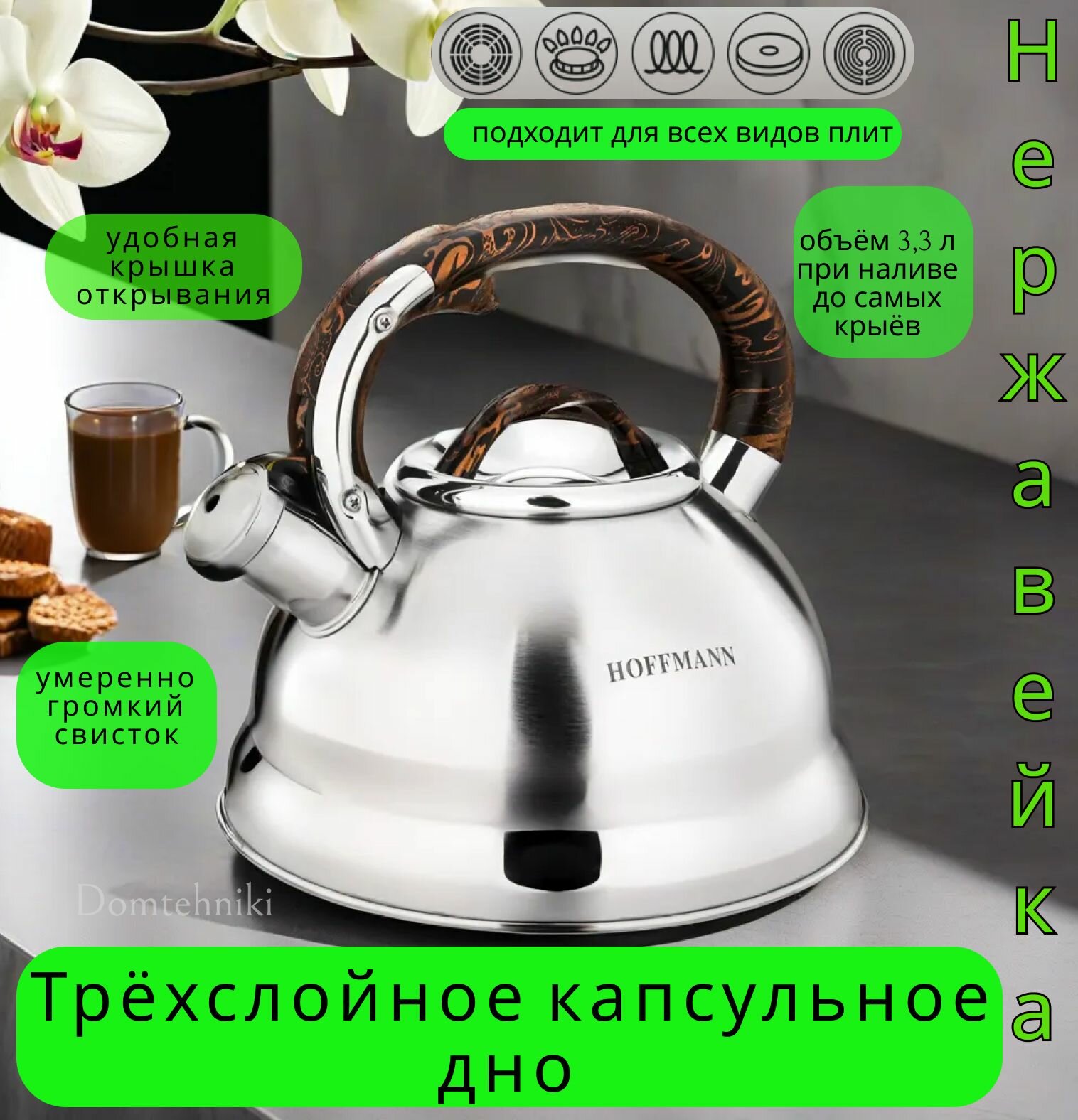 Чайник Hoffmann, НМ5575, чайник со свистком, 3,3 л интересное: