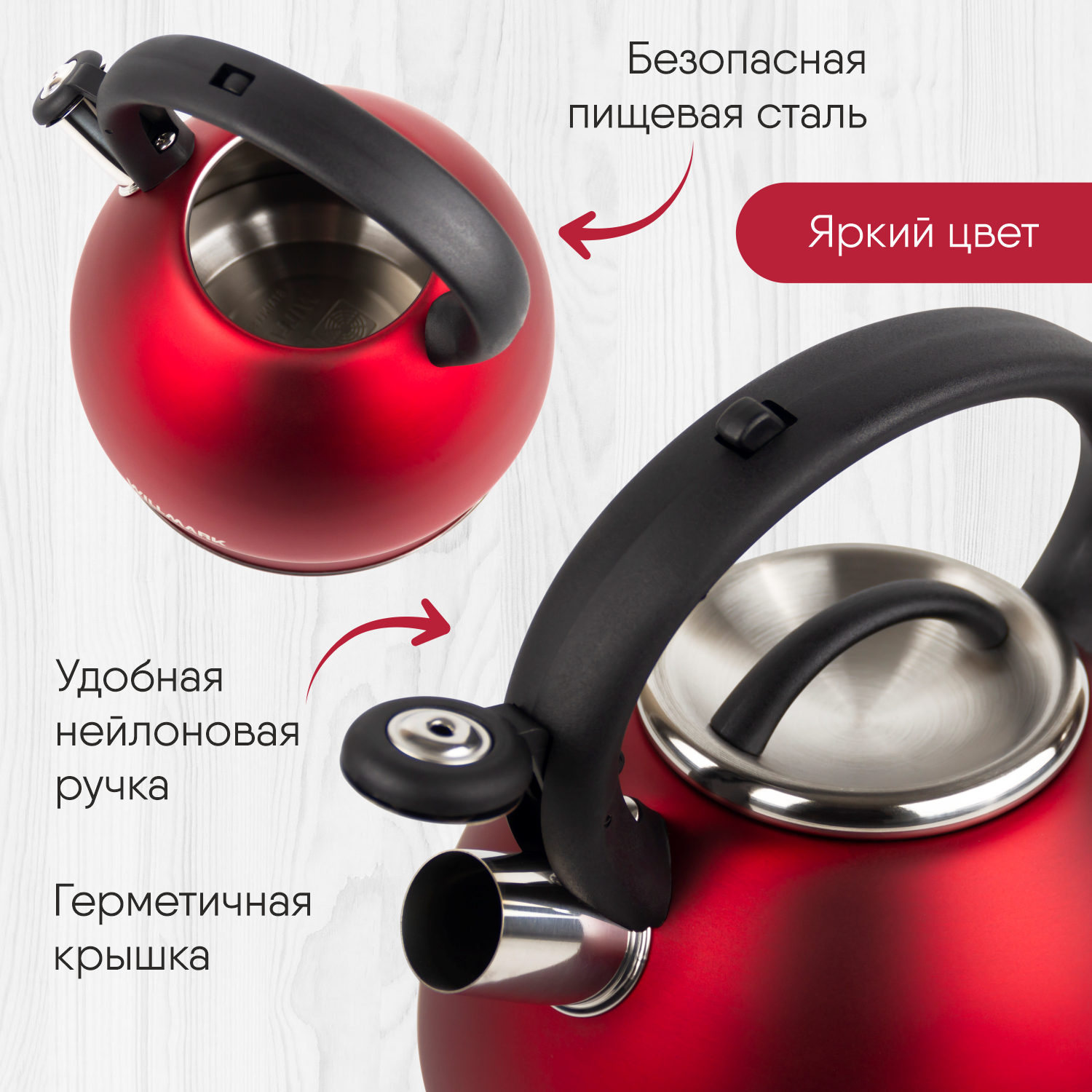 Купить Чайник со свистком Willmark WTK-4221SS, с термоизолированной ручкой, красный, 3.5л