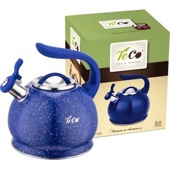 | Комплектация | Чайник наплитный со свистком TECO со свистком, TC-122-BL, мраморное покрытие, голубой |