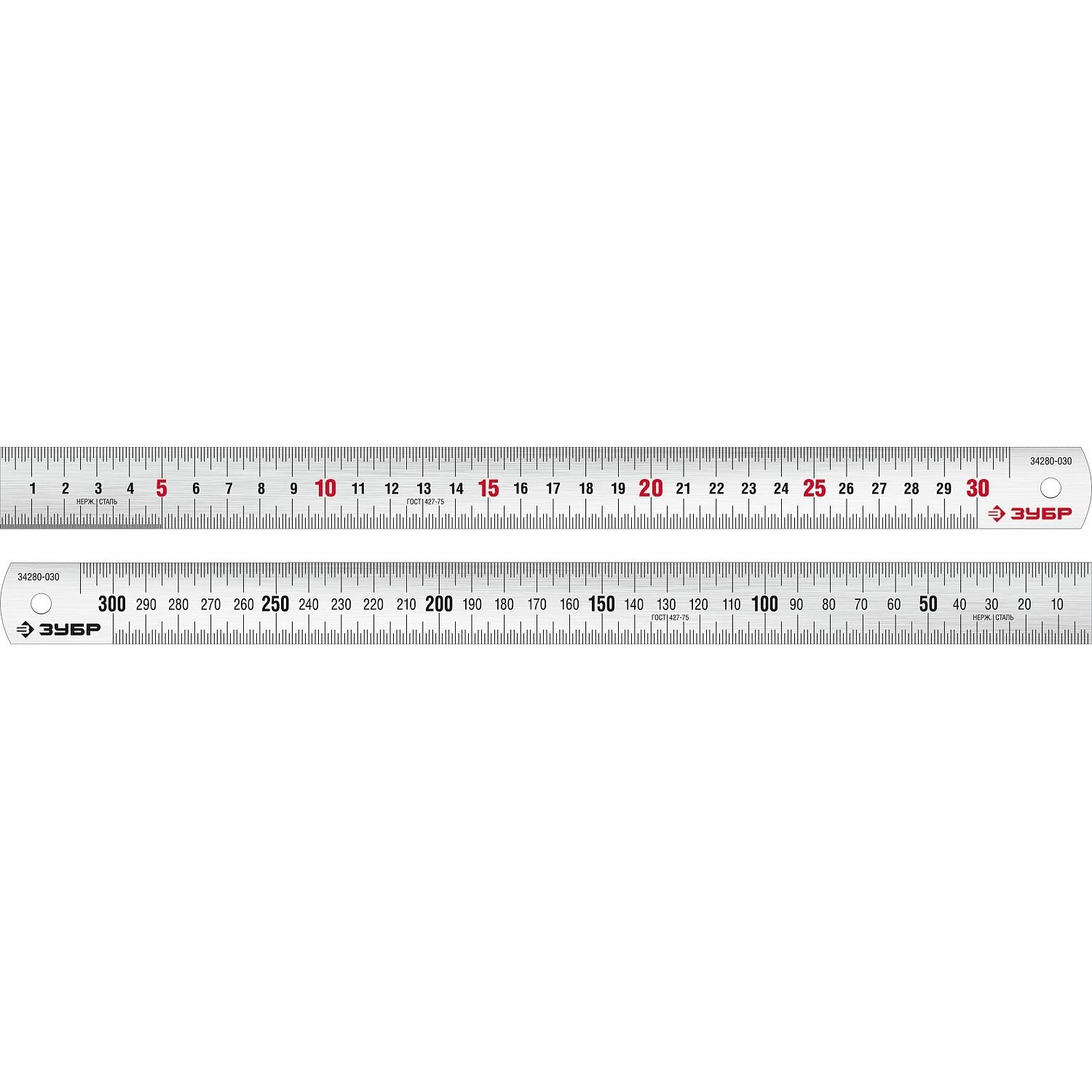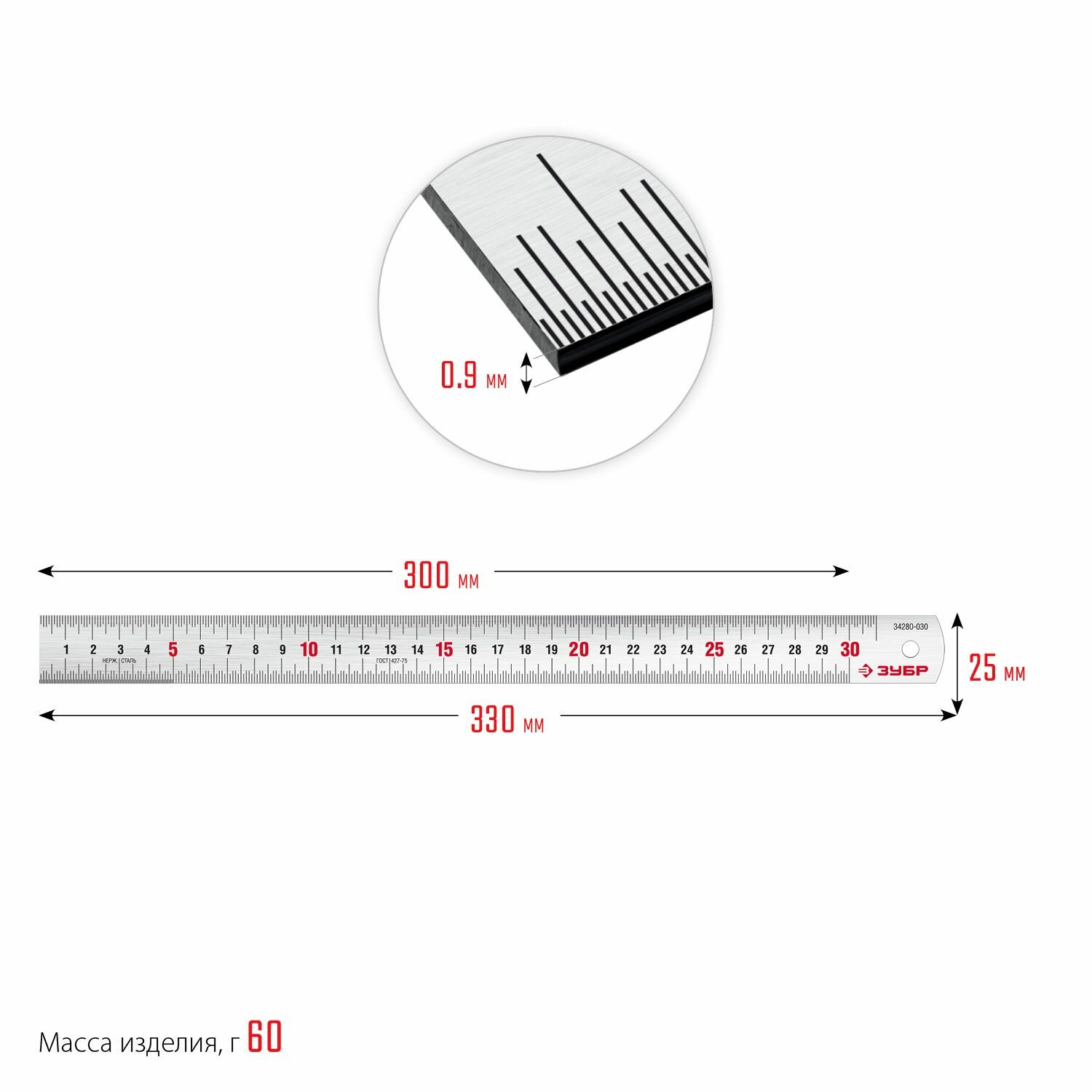 ЗУБР длина 0,30 м, Усиленная нержавеющая линейка (34280-0.9-030)