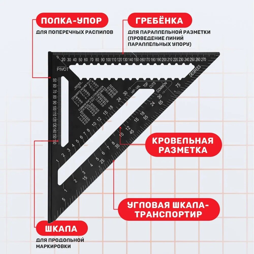 Угольник столярный черный линейка Свенсона 430мм х 300 мм, SWENSSON Алюминий интересное: